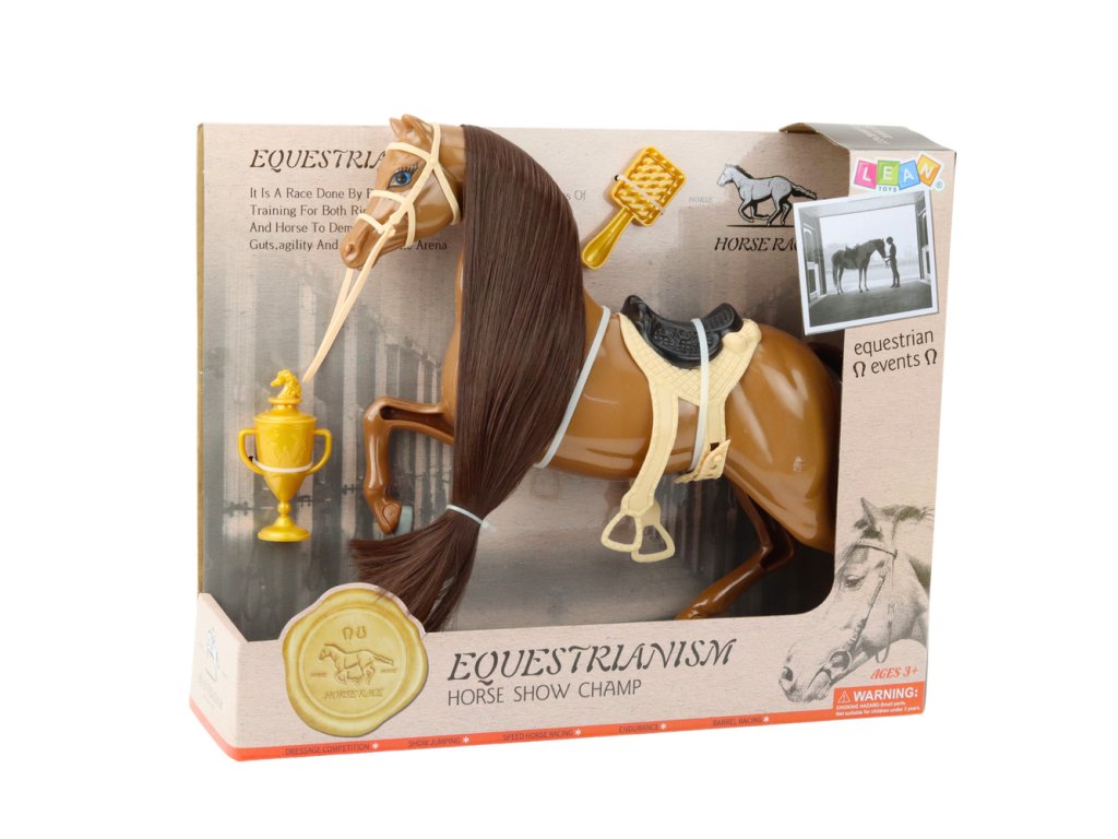 Hračka je vyrobena z odolného, bezpečného plastu a měkká, lesklá hříva jí dodává jedinečné kouzlo. Hnědý kůň je stabilní a dokáže stát sám, což umožňuje jeho umístění do různých póz a scén. Celá věc je zabalena v estetické krabičce s okénkem, které dokonale zobrazuje obsah - díky tomu je sada ideální jako dárek k narozeninám, svátku nebo jiné zvláštní příležitosti.