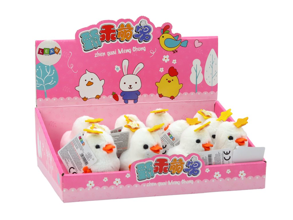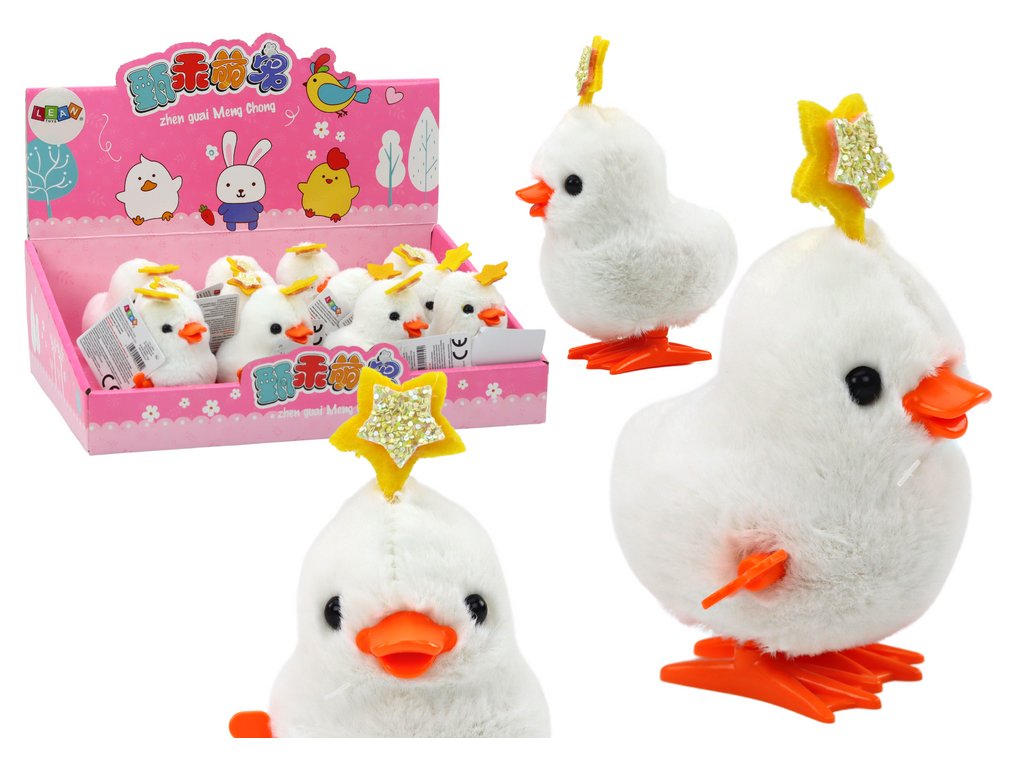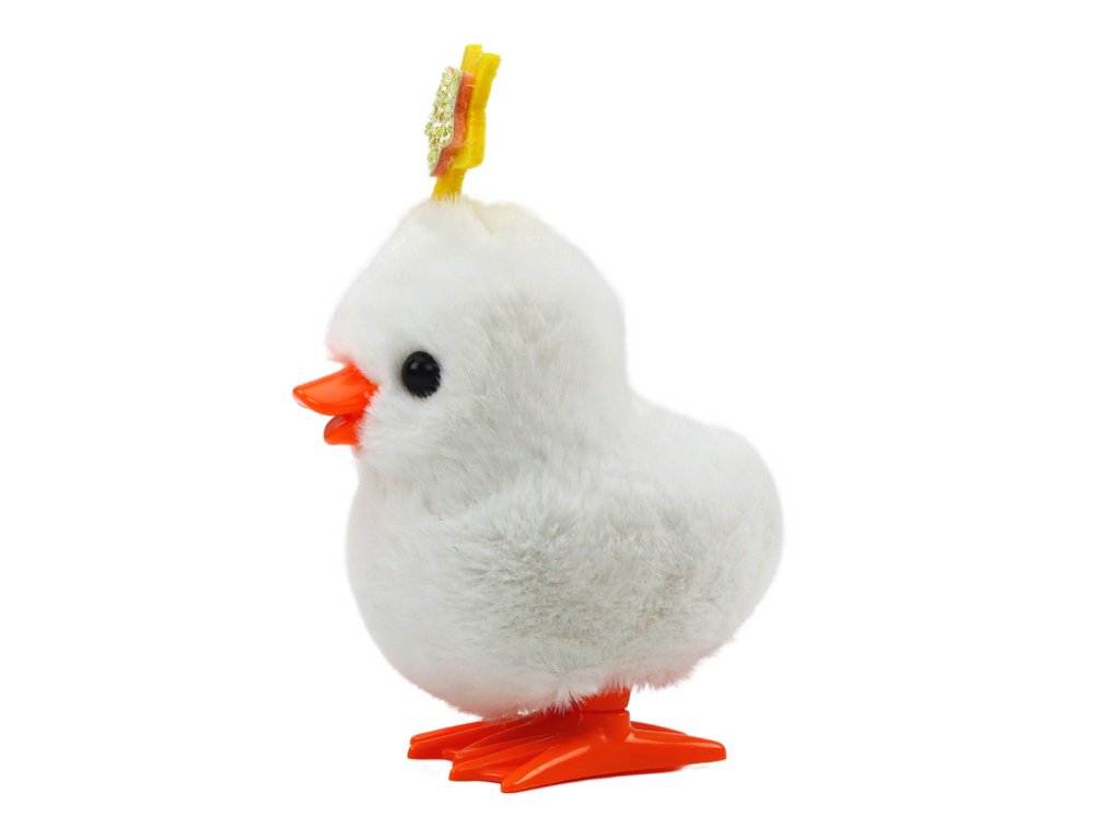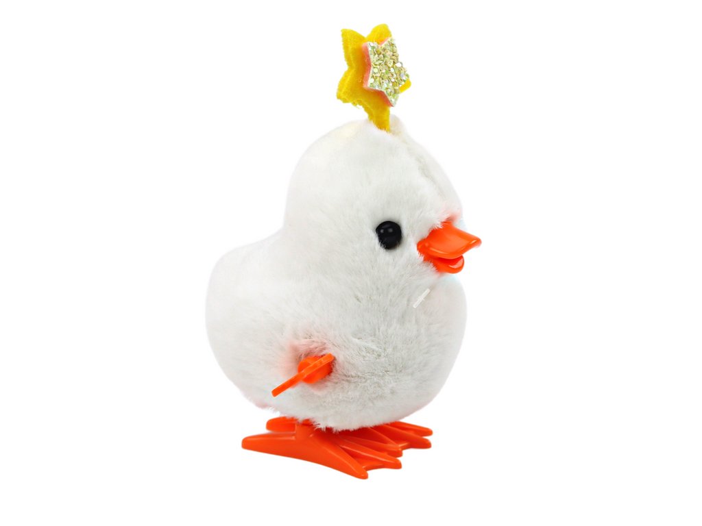 Jedná se o roztomilé natahovací kuřátko, které svým kouzlem a pohyby jistě upoutá pozornost každého dítěte. Kuře je vyrobeno z bílého chmýří, které mu dodává čistý, pěkný a příjemný vzhled. Jeho oranžový zobák a nohy dodávají barevný akcent, díky kterému se odlišuje od ostatních hraček.