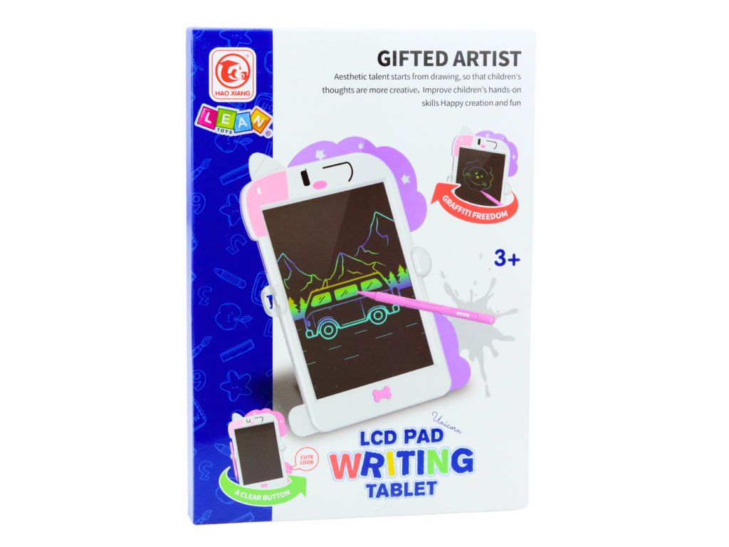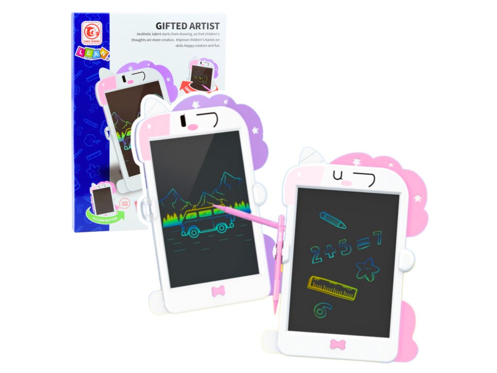LCD psací kreslicí tabulka stylus jednorožec růžový