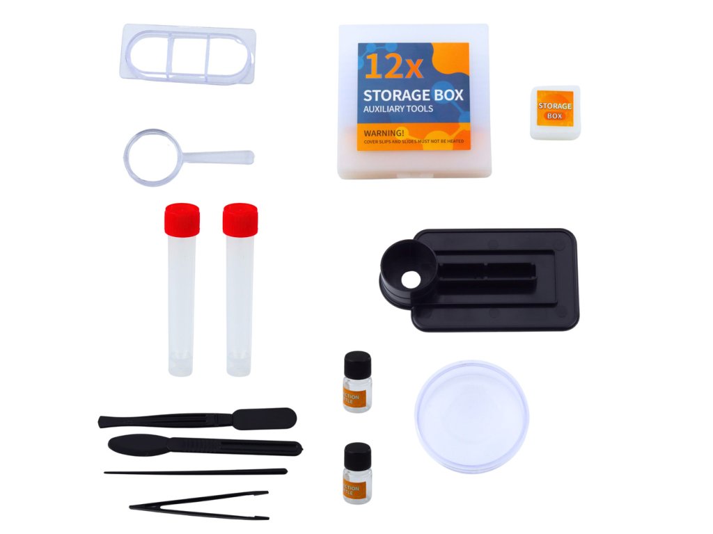Díky možnosti třístupňového zvětšení (200x, 600x, 1200x) mohou děti pozorovat buňky, látky, hmyz a mnoho dalších struktur. LED podsvícení poskytuje jasný a jasný obraz a ergonomický design umožňuje pohodlné používání mikroskopu i při delší práci.