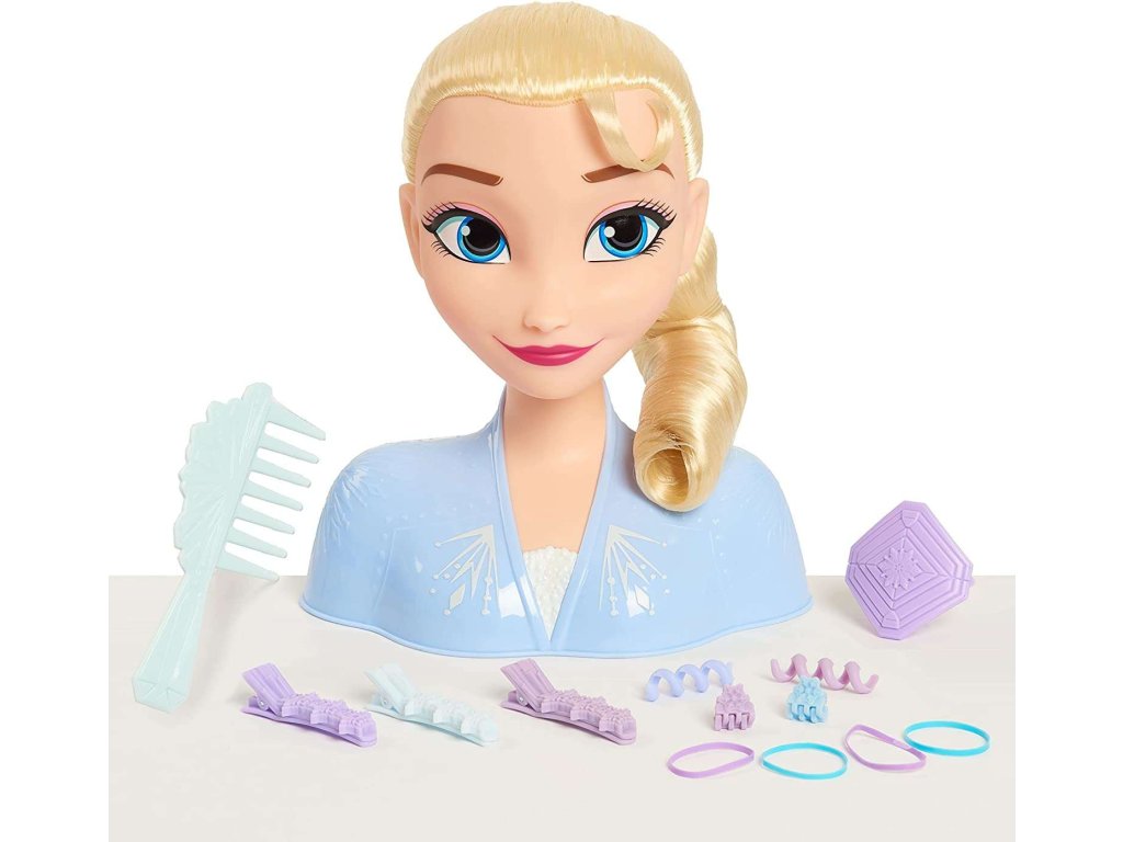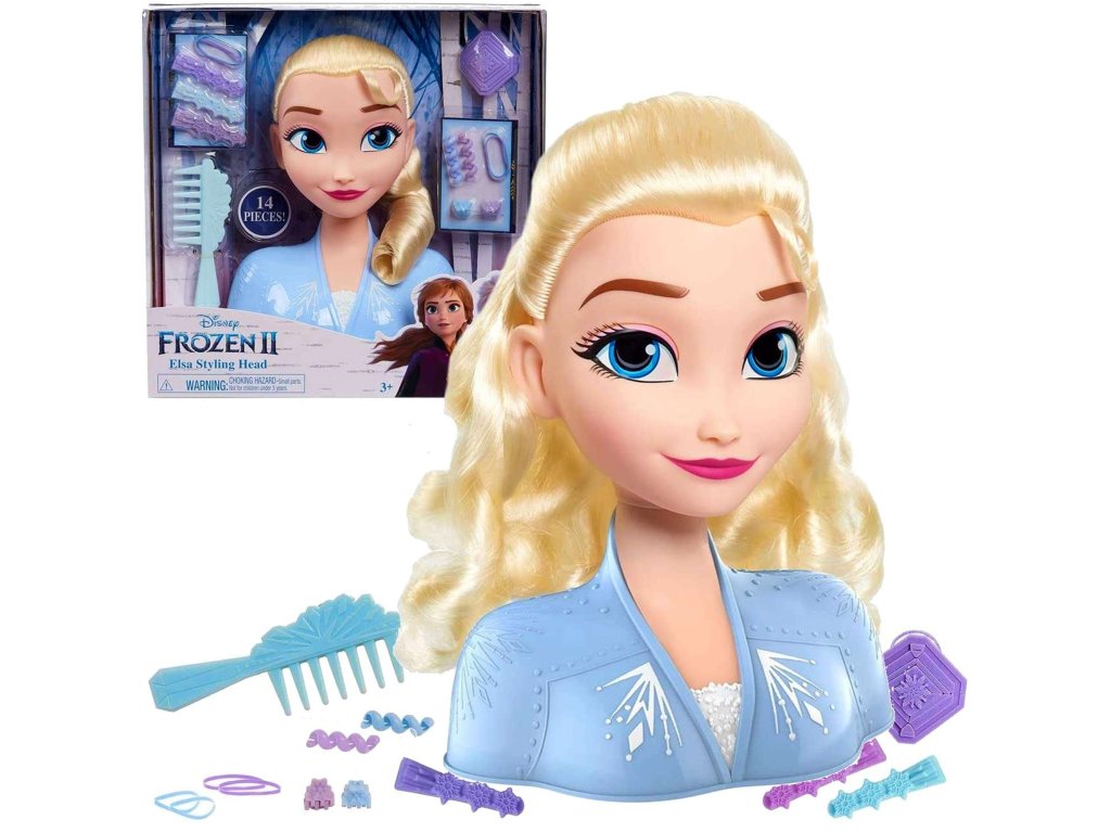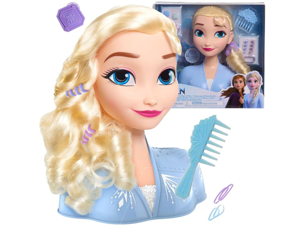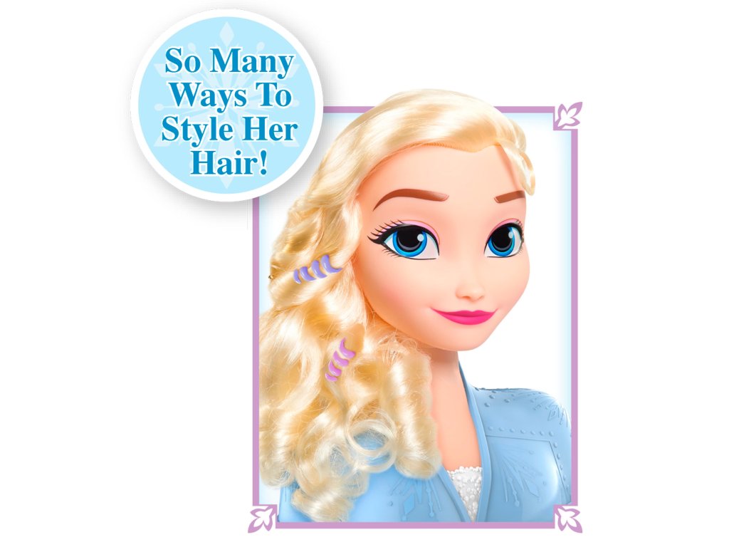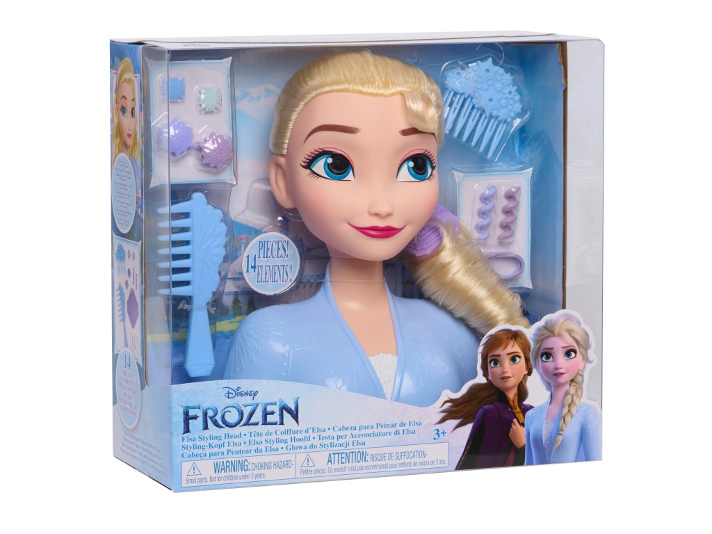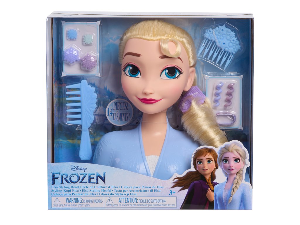 Tato stylingová hlava věrně reprodukuje pohádkovou postavu a obsahuje Elsu - krásnou dívku s modrýma očima a dlouhými blond vlasy, spletenými do copánků a přístupnými stylingu.