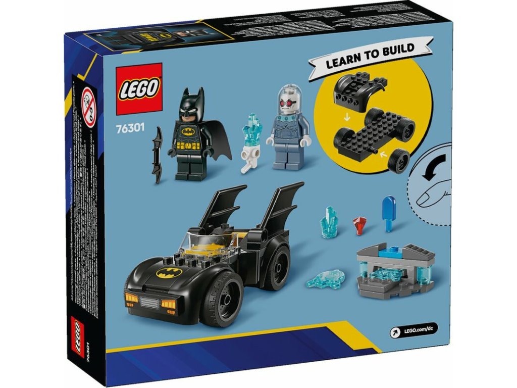 Batman™ a Batmobile vs. Mr. Freeze™ (76301) je kreativní LEGO® stavebnice navržená tak, aby pomohla dětem ve věku od 4 let rozvíjet stavitelské dovednosti při hraní dobrodružství se superhrdiny. Stavebnice LEGO DC je nabitá skvělými doplňky, které malé fanoušky Batmana zabaví, a skvělá vozidla. Sada obsahuje minifigurky pana. Freeze a Batman, navíc sestavitelný Batmobil s místem pro minifigurku Batmana. Děti mohou střílet ledové prvky z odpalovacího zařízení s otvorem v horní části pro uložení Mr.'s ice blaster. zmrazit nebo zmrzlinu. K Batmobilu lze připevnit dva ledové diamanty, aby si děti mohly hrát na „zmrazování“ vozidla. Sada obsahuje barevnou ilustrovanou brožuru s intuitivními pokyny. Oddělené pytle s bloky a velký startovací blok dělají stavění rychlé a zábavné. Stavebnice LEGO pro děti od čtyř let jsou skvělým způsobem, jak mohou rodiče a děti stavět společně.