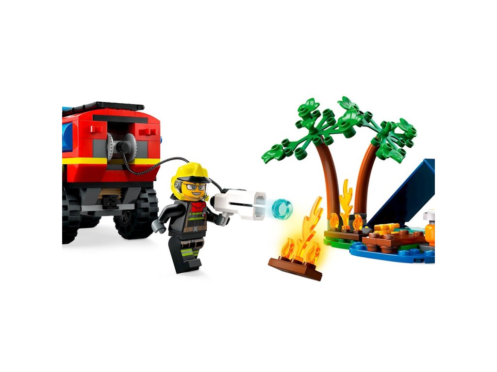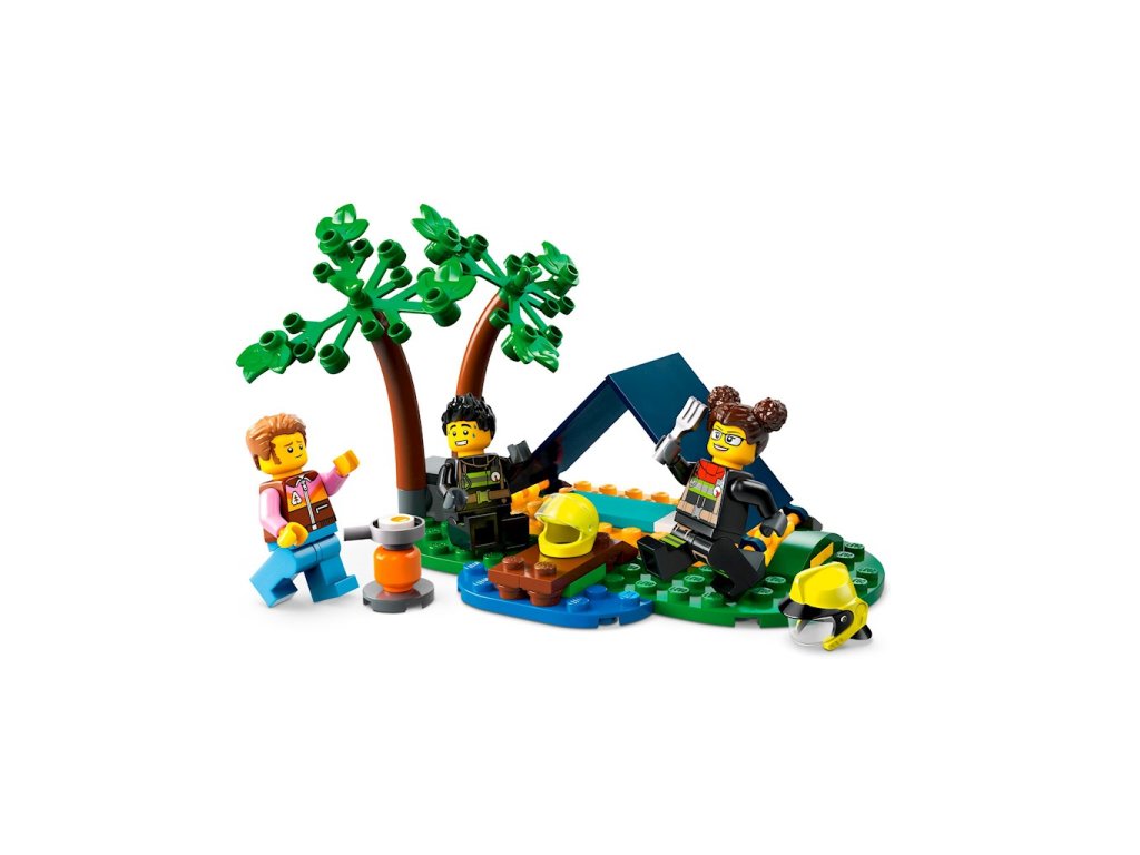 • Obsahuje vše, co děti potřebují ke stavbě terénního hasičského auta, přívěsu, záchranného člunu, stanu a kempingové scény s ohněm, a navíc minifigurky táborníka a 2 hasiče
