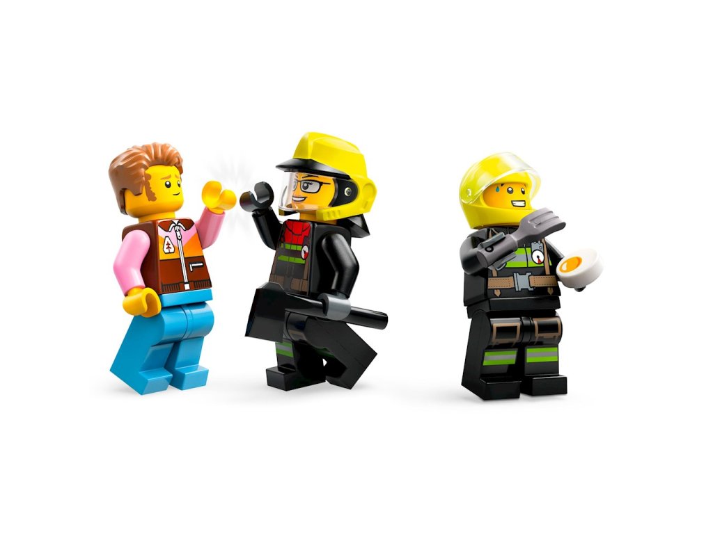 • Spousta funkcí pro stimulaci představivosti - terénní vozidlo má odnímatelnou střechu pro přístup do kajuty a odnímatelný přívěs s hasicím nástavcem, hasičské nářadí • Digitální návod ke stavění – v aplikaci LEGO® Builder pro chytré telefony a tablety mohou děti přibližovat a otáčet model budovy, aby ho viděly ze všech úhlů