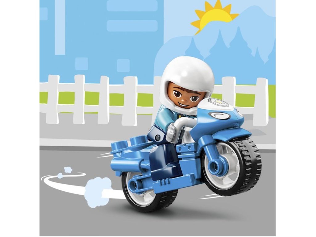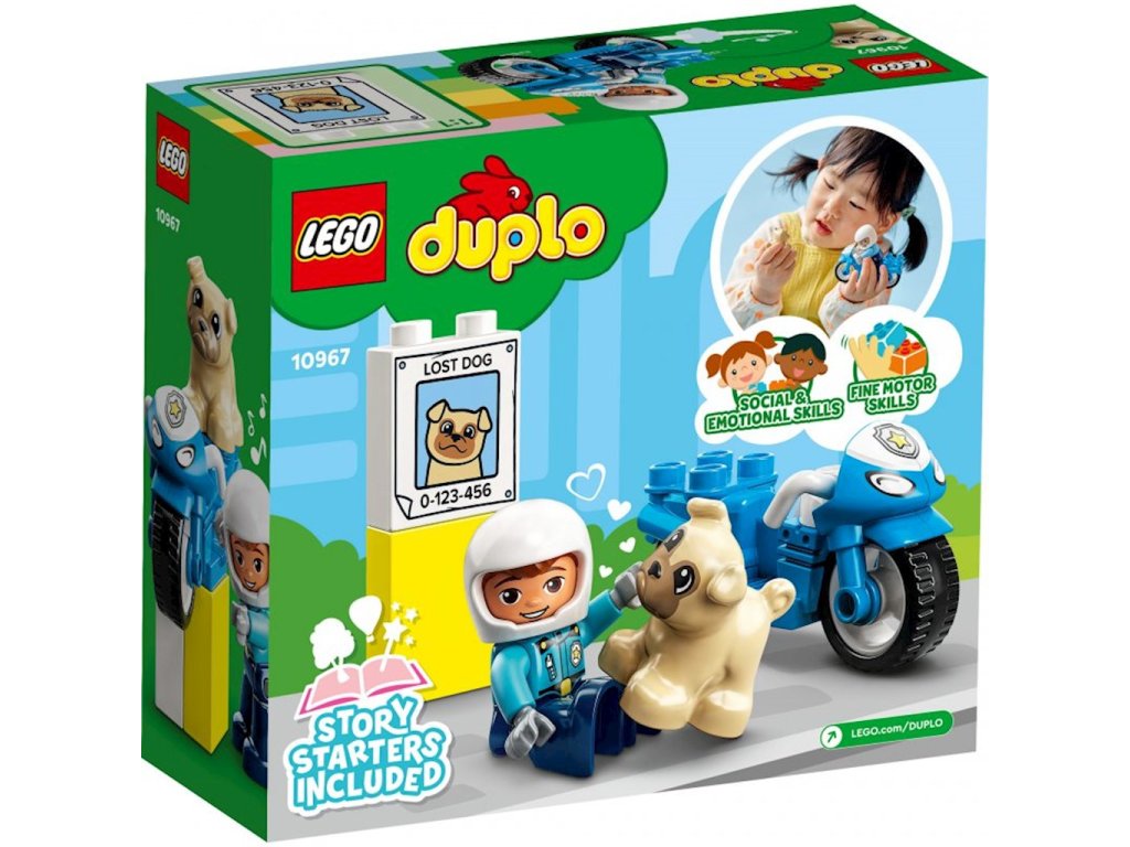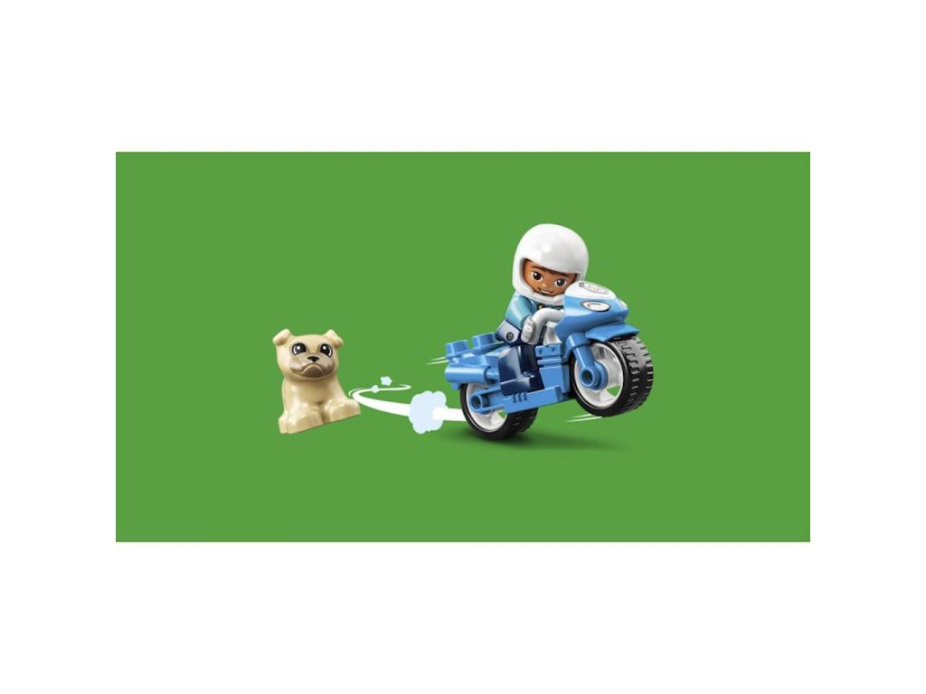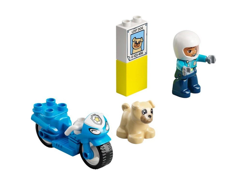 Policejní motorku si mohou děti sestavit z 5 dílků.Poté si mohou s figurkou policisty přehrát příběh, kdy budou hledt zmizelého pejska.