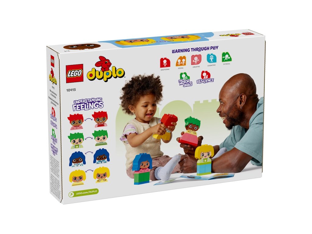 LEGO Duplo Moje pocity a emoce 10415Pomozte dětem objevit jejich emoce a reakce se vzdělávací sadou LEGO® DUPLO® Moje první pocity a emoce. Obsahuje čtyři různé postavy, z nichž každá má dva různé výrazy, takže předškoláci mohou měnit své nálady a zároveň vyjadřovat své pocity.