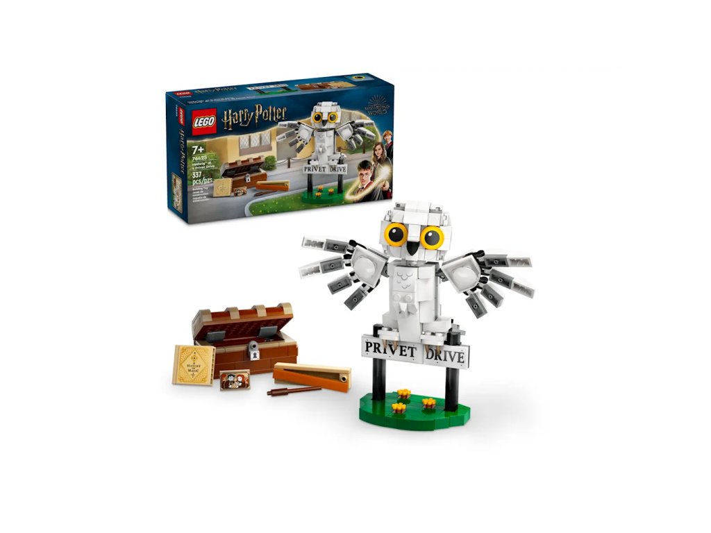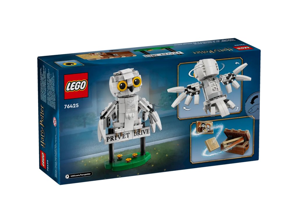 Lego Harry Potter Hedvika s návštěvou na ul. Privet Drive 4 76425Probuďte své láska vašeho dítěte k kouzelnickému světu dobrodružství s pomocí sady Hedwiga™ navštěvuje ul. Privet Drive 4 (76425). Figurka sněžné sovy Má pohyblivou hlavu, křídla a ocas a může sedět na cedulce "Privet Drive". Tato stavebnice také obsahuje truhlu s ikonickými předměty z Harry Potter™, který model zpestří a inspiruje děti kreativní hraní rolí. Tato stavebnice pro děti je skvělým tipem na dárek popř narozeninový dárek pro fanoušky Harryho Pottera ve věku od sedmi let. Lze kombinovat s dalšími LEGO® sadami Harryho Pottera (prodáváno samostatně), abyste rozšířili možnosti zábavy.