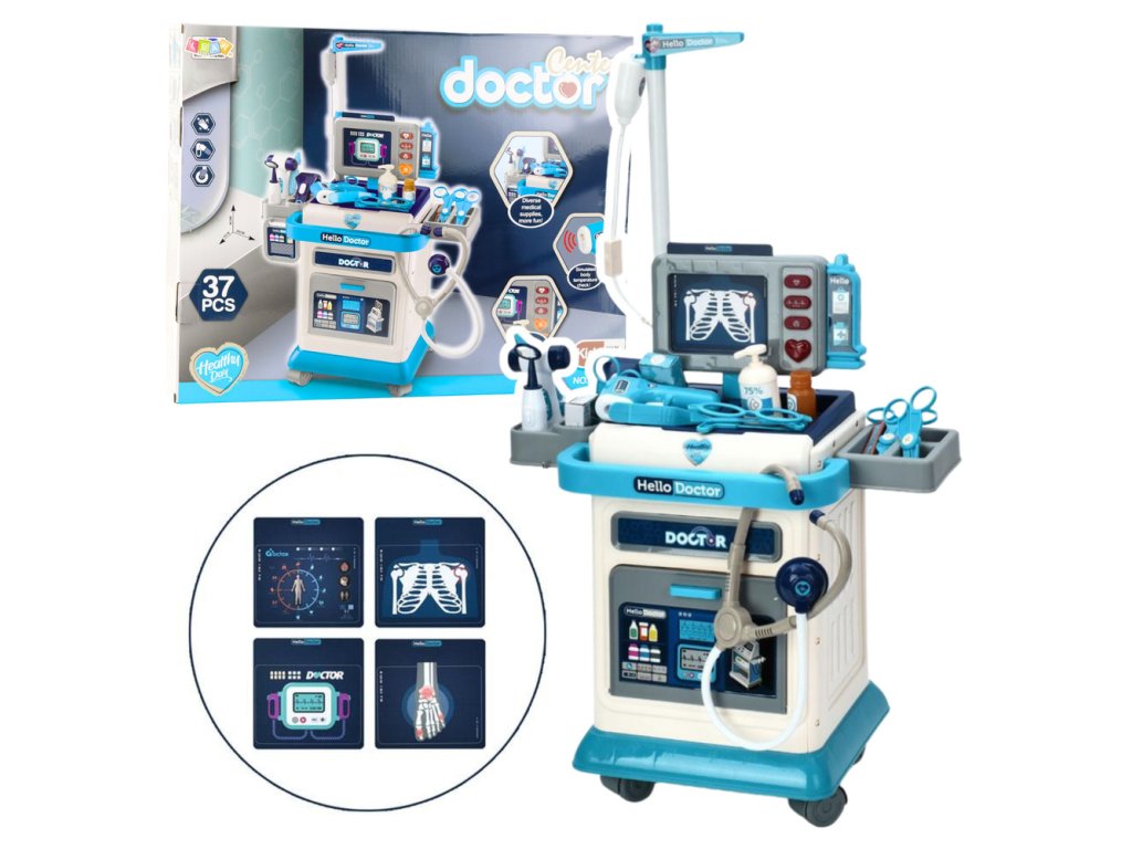 VELKÁ 37DÍLNÁ SADA PRO DĚTI – LÉKAŘSKÝ VOZÍK SE SVĚTELNÝMI A ZVUKOVÝMI EFEKTY