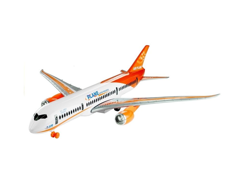 Prezentované letadlo má štíhlou, štíhlou konstrukci. Spojuje jemně bílou a živou oranžovou barvu - je viditelná mimo jiné na ocasu letadla a také na jeho motorech a stříbrošedých křídlech letadla. Díky detailům ve tvaru barevných pruhů, nápisů a symbolů působí letadlo jako skutečné, což navíc stimuluje zrak dítěte. Letadlo je vyrobeno s důrazem na nejmenší detail. Ve své konstrukci má i přední dveře na nádraží jako okna pro cestující - umožňují nahlédnout dovnitř hračky. Letadlo je kolové, na dvou párech kol - první, menší je složené, zatímco druhé má třecí pohon. Plastová kolečka mají stahovací konstrukci, takže hra s tímto hoblíkem je velmi příjemná i na hrbolatém terénu.