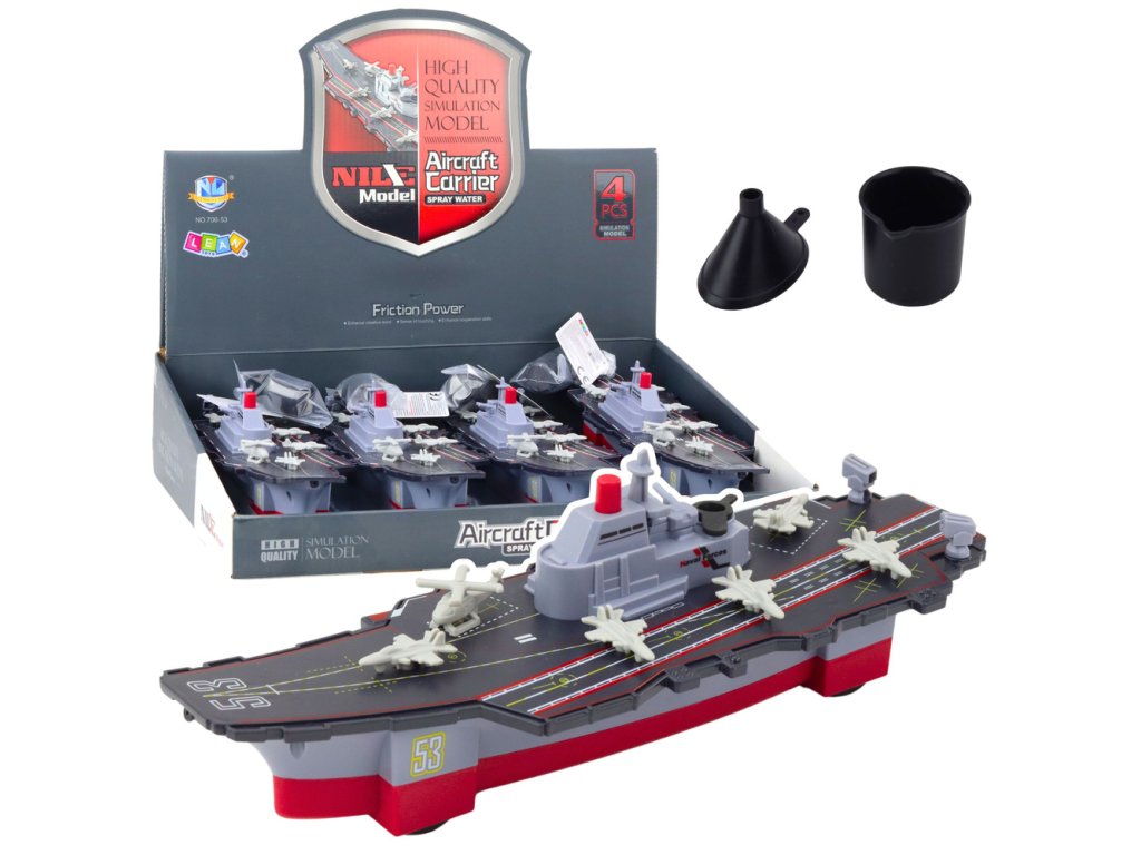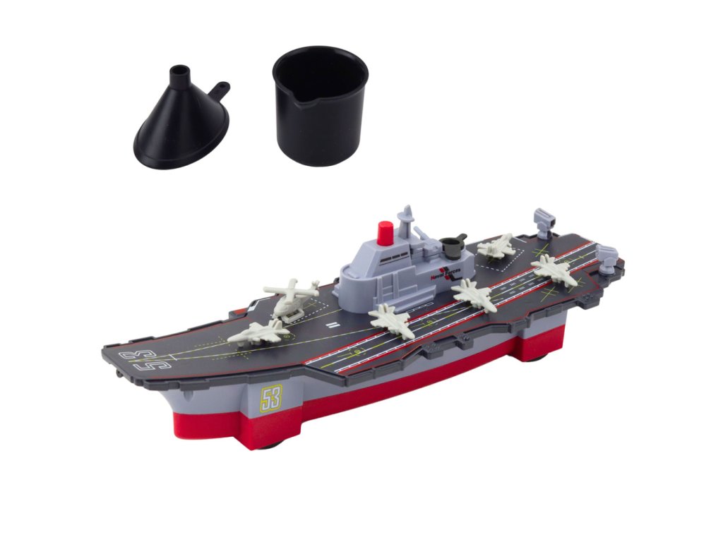 Válečná loď s funkcí nalévání vody je jedinečná hračka, která dětem poskytne spoustu radosti a vzrušující zábavy. Díky třecímu pohonu se hladce pohybuje po hladkých površích, díky čemuž je ideální pro hraní doma. Dalším lákadlem je efekt nalévání vody - po naplnění speciální nádrže začne z hračky vytékat proud vody napodobující realistické palubní aktivity.