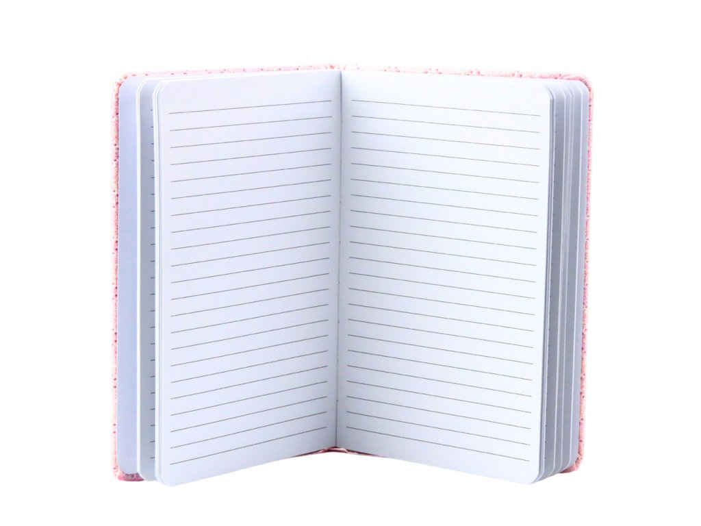 A6 GLITROVÝ RŮŽOVÝ LINEKOVANÝ ZÁPISNÍK 80 STRÁNEK SE ZÁPLATY
