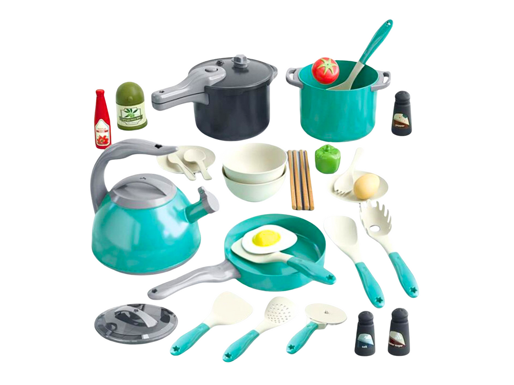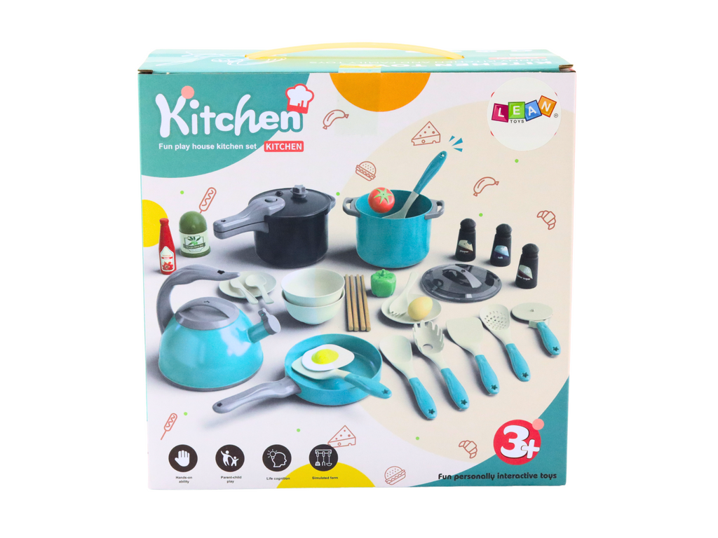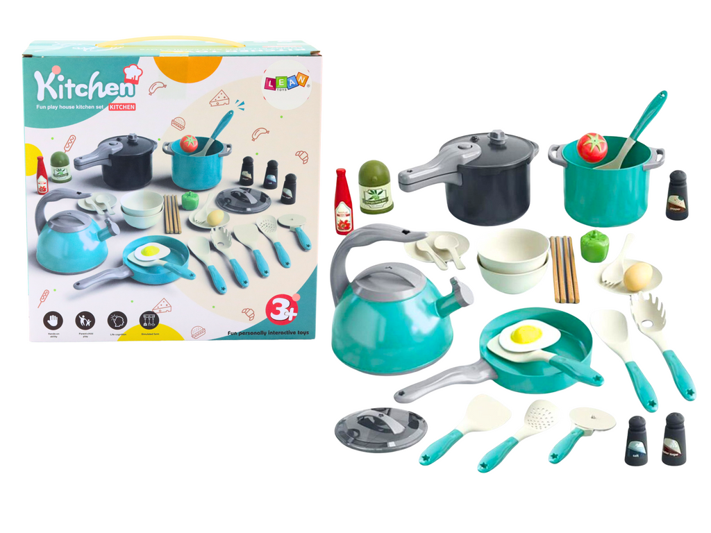 Sada pro malé kuchaře je neuvěřitelně bohatá sada, která se skládá až z 33 prvků a nabízí malým kuchařům skvělé možnosti zábavy a učení. Díky různým doplňkům, jako jsou hrnce, pánev, konvice, nože, brousek na nože, prkénka na krájení, kuchyňské náčiní, potraviny a nádoby na koření, se děti mohou vžít do role skutečného hostitele nebo hostitelky a rozvíjet své kulinářské a sociální dovednosti.