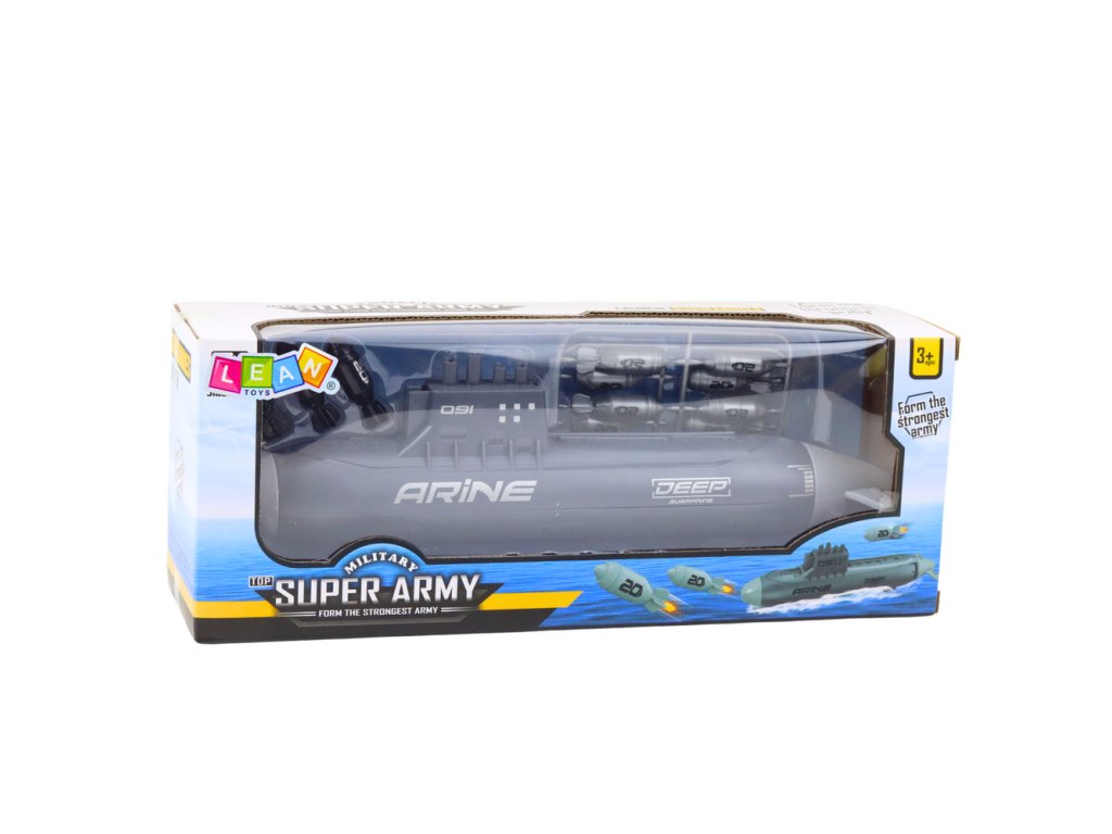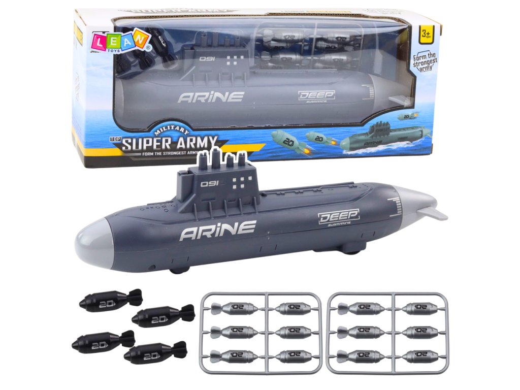 Realistická 28 cm dlouhá ponorka je skvělá hračka pro mladé fanoušky vojenských a námořních dobrodružství. Díky třecímu pohonu (mechanickému napětí) se člun může pohybovat po hladině a funkce torpédového odpalu dodává vzrušení a činí každou hru atraktivnější.