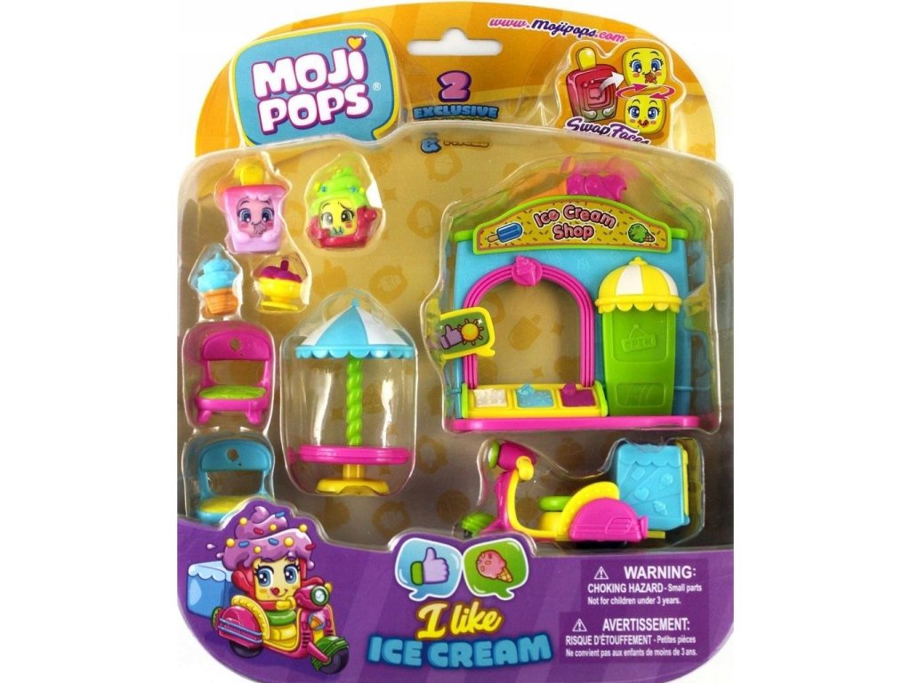 MojiPops milují zmrzlinu. Chodí si do zmrzlinárny sednout ke stolu a vychutnávat si pochoutky. A pokud se chtějí o zmrzlinu podělit s přáteli, mohou ji doručit pomocí přiloženého skútru!
