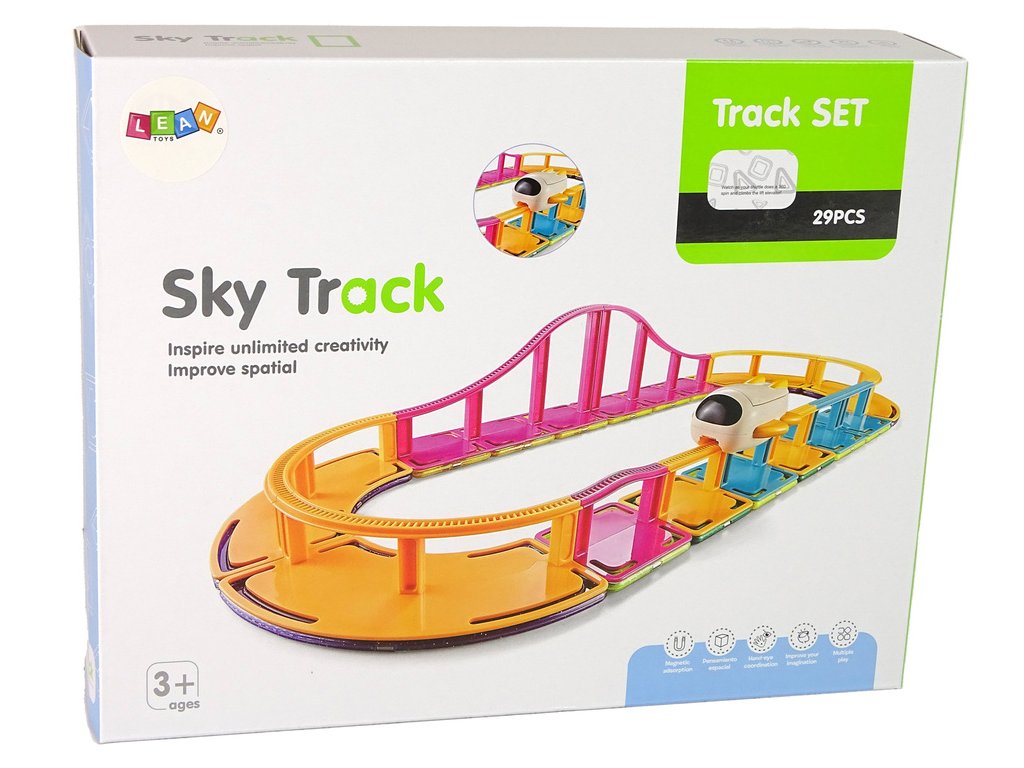 Magnetické hračky Sky Track s různými barvami a tvary mohou pomoci s pochopením barev a geometrických obrazců. Magnetické bloky mohou umožnit vašim chlapcům nebo dívkám stimulovat jejich představivost a začít si hrát s vesmírným tryskáčem.