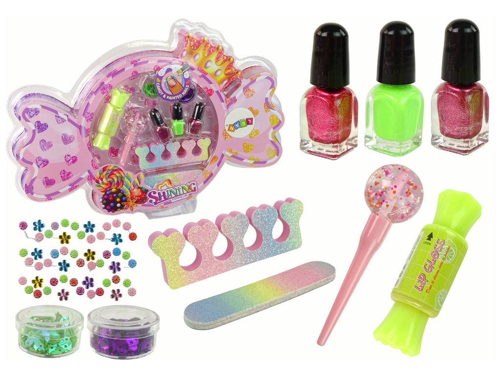 Okouzlující sada krásy, zabalená v jedinečném balení ve tvaru bonbonu. Tato fenomenální sada je perfektním dárkem pro malé milovnice líčení, kosmetiky a kreativní zábavy.