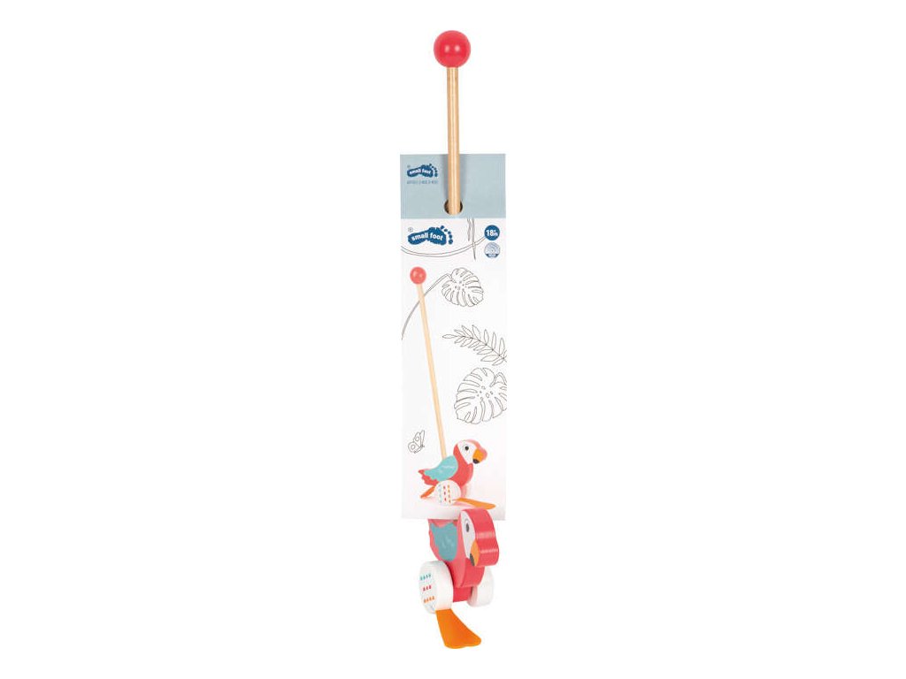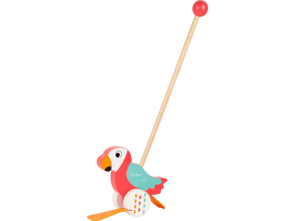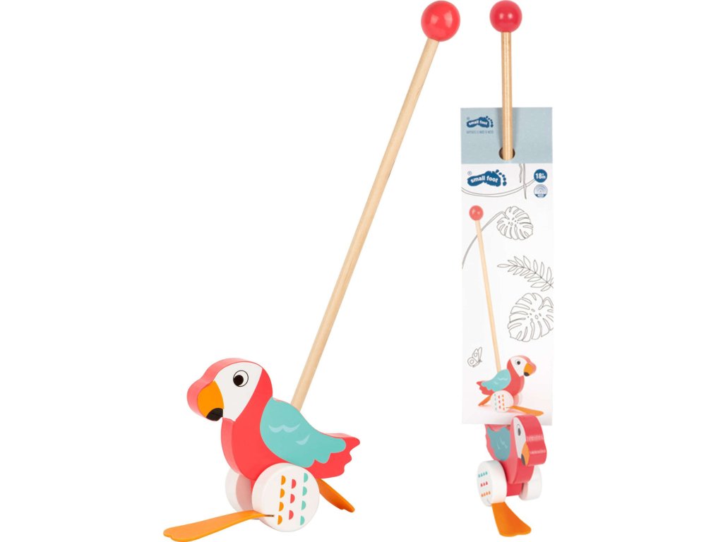 Malá noha Dřevěný dětský tlačný papoušek Lori