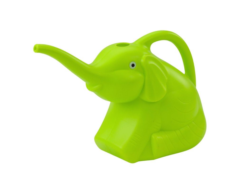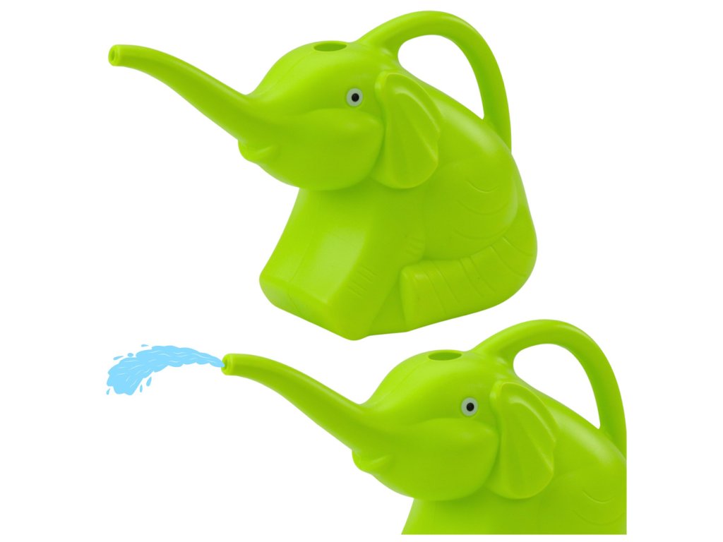 Zelená konev pro děti ve tvaru půvabného slona je kombinací funkčnosti a přátelského designu, který vybízí ty nejmenší k aktivitě venku. Charakteristický tvar s dlouhým kmenem a velkýma ušima dělá zalévání rostlin zábavou, nikoli dřinou. Konev je vybavena pohodlným madlem, díky kterému se dobře drží i těm nejmenším ručkám, a dvěma otvory - na hlavě pro napouštění vodou a v kufru pro zalévání.
