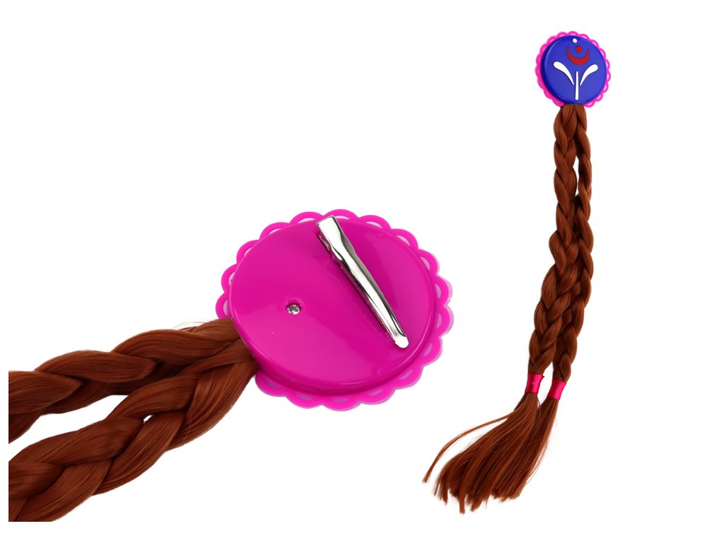 Pro začátek tu máme krásnou vlásenku se dvěma dlouhými copánky, které dodají každému účesu šarm a eleganci. Růžová rukavice zdobená modrými třpytkami, která dodává mimořádný lesk a rozzáří vaši malou princeznu na každém plese.