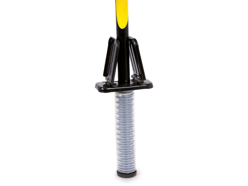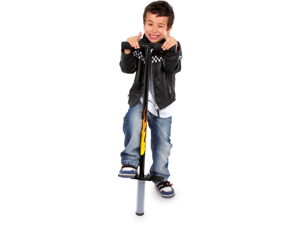 skokan má černou barvu a ve spodní části je zdoben motivem plamene. Byl vyroben z kovu, přičemž jeho spodní konstrukce je pružinová. Skokan je vybaven měkkými rukojeťmi pro bezpečné uchycení. Díky skládacím opěrkám nohou a rukojetím se bude hrazda snadno skladovat a převážet.