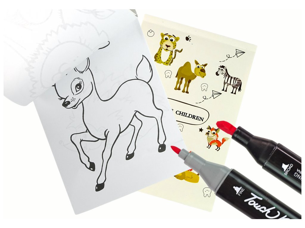- Omalovánka (21 cm x 14 cm) s 20 obrázky zvířátek k vybarvení.