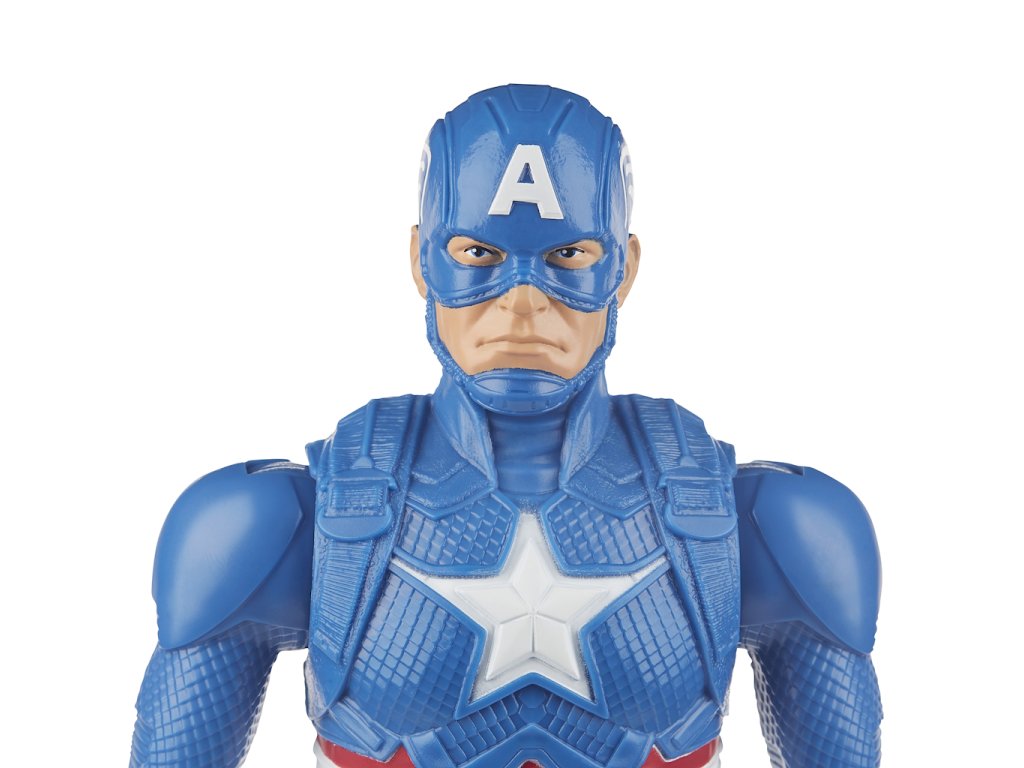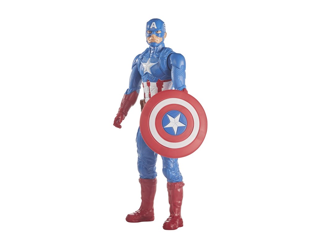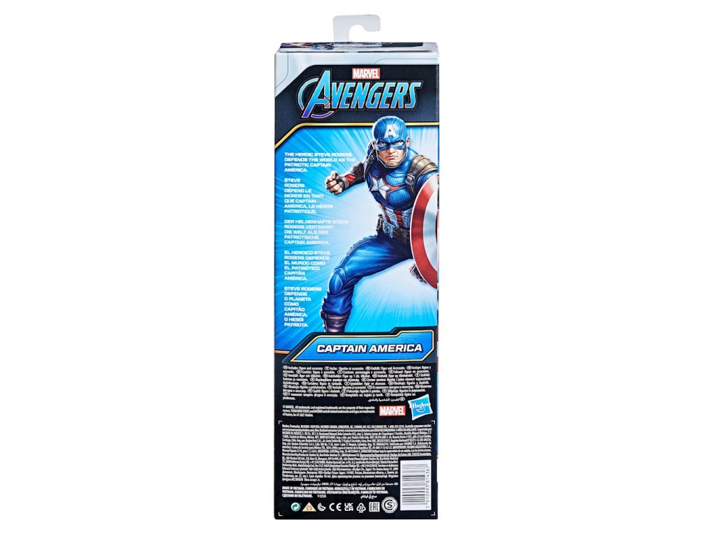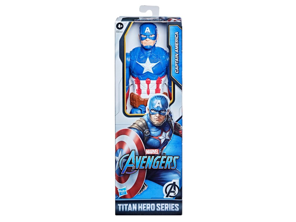 Figurka Marvel Avengers Titan Hero Series Captain America E7877Captain America je fiktivní postava, superhrdina známý z mnoha komiksových sérií vydaných nakladatelstvím Marvel Comics a různých adaptací založených na komiksových publikacích. Po vypuknutí druhé světové války si mladý muž Steve Rogers zoufale přál vstoupit do armády, aby sloužil své zemi. Bohužel byl pro svou nenápadnou a jemnou stavbu těla odmítnut. Podařilo se mu však upoutat pozornost několika vlivných osobností, včetně Dr. Abrahama Erskina, který hledal dobrovolníky pro tajný experiment v rámci Projektu Znovuzrození, zaměřeného na vytvoření supervojáka. Po požití záhadné látky se Steve stal nadlidsky silným, rychlým a odolným.
