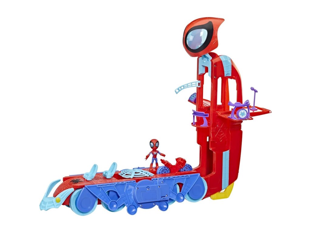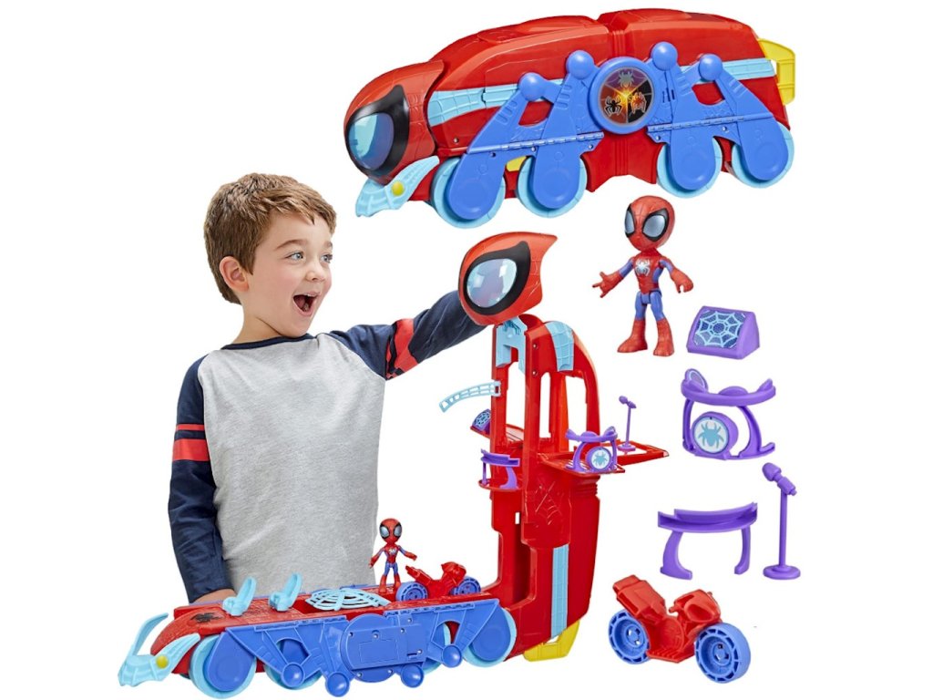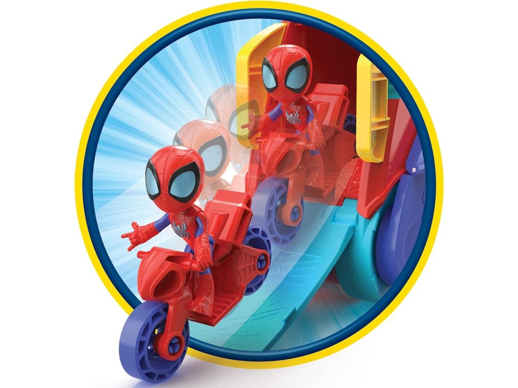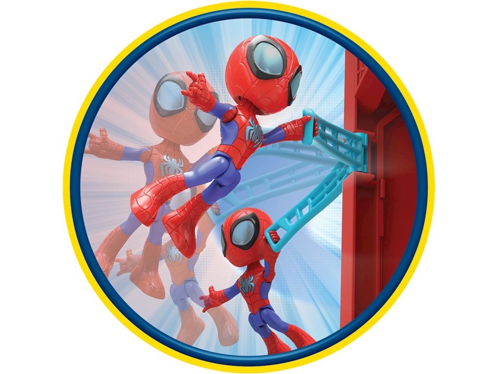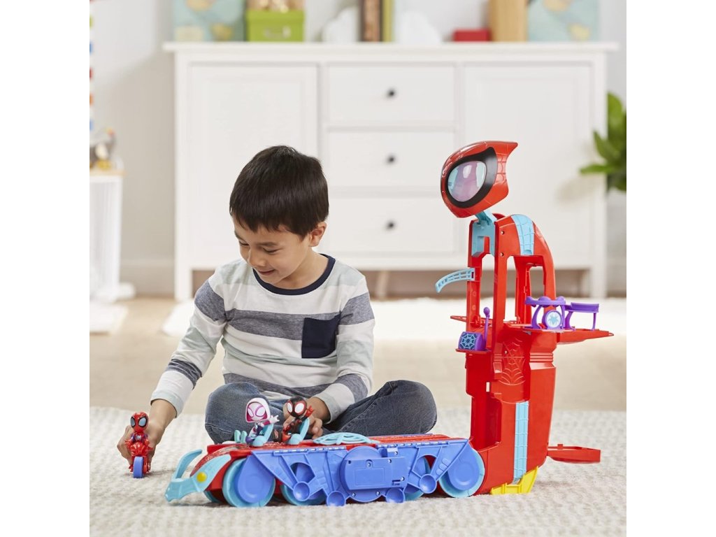 - po jednoduché transformaci mohou děti otevřít věž velitelství a odhalit rampu pro Spideyho motorku, síťovou past, pódium, velitelské centrum a rameno se sítí na houpání.