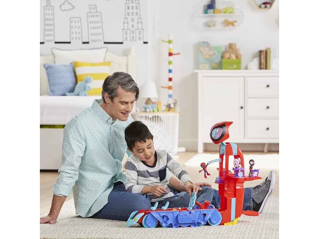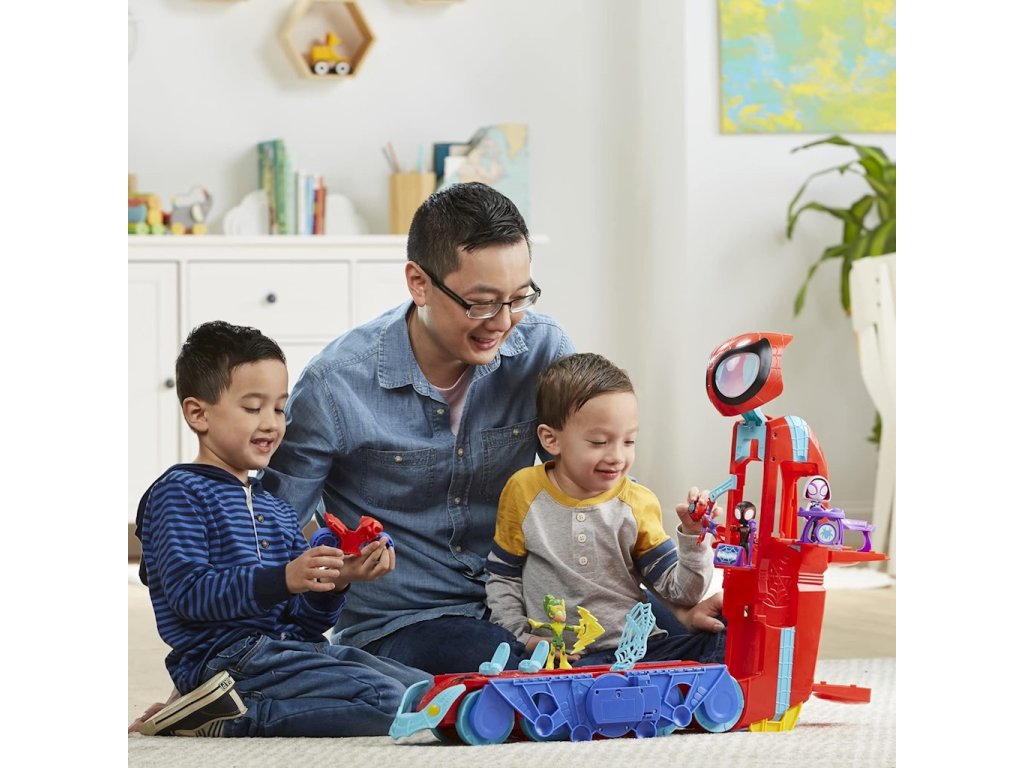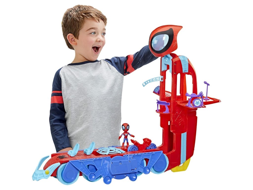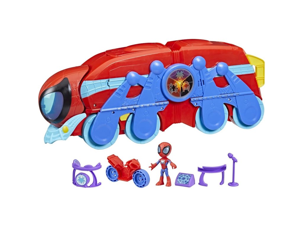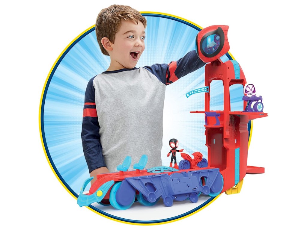 - po jednoduché transformaci mohou děti otevřít věž velitelství a odhalit rampu pro Spideyho motorku, síťovou past, pódium, velitelské centrum a rameno se sítí na houpání.