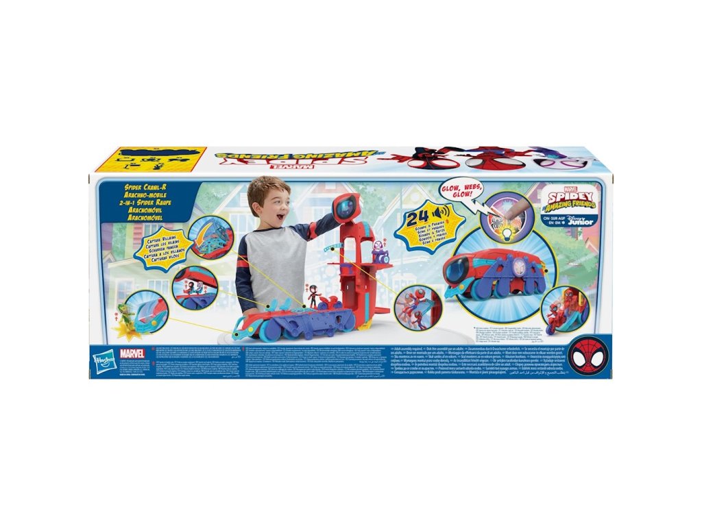 Ponoř se do sítě se vzrušující sadou Spidey! Tato sada superhrdiny 2 v 1 se světly a zvuky se promění z velkého chodícího vozidla na 61 cm vysokou věž HQ! Když je sada v režimu věže, mohou si děti představovat plánování misí ve velitelském centru, předstírat show pomocí přiloženého příslušenství s nástroji, houpat se na pavučinovém rameni a mnoho dalšího! Vytáhni rampu a figurka Spideyho může sjet dolů na přiložené motorce! V režimu vozidla i v režimu soupravy mohou předškoláci vyhazovat pavoučí nárazník a odstrkovat narušitele pořádku z cesty! S touto sadou se děti mohou cítit součástí akce pavoučího týmu!Jedinečné vlastnosti sady: