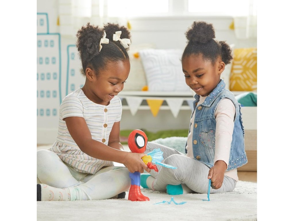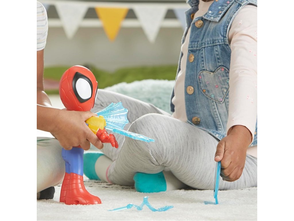 • Spideyho druhé zápěstí má také připojený pavučinový doplněk s funkcí otáčení!
