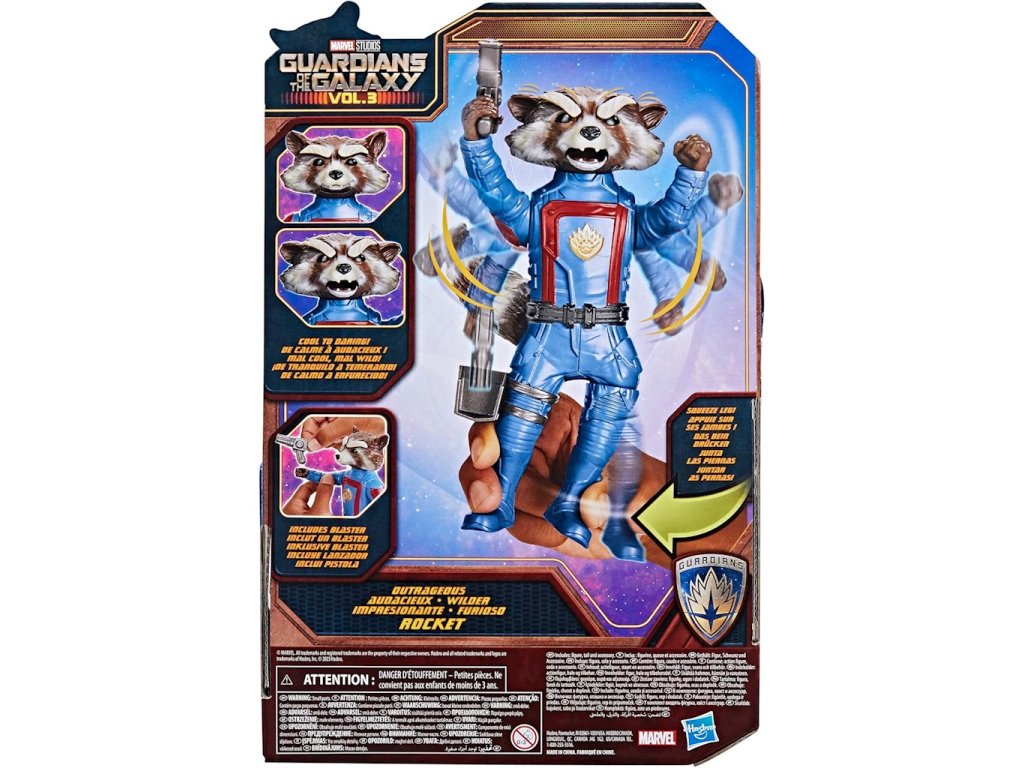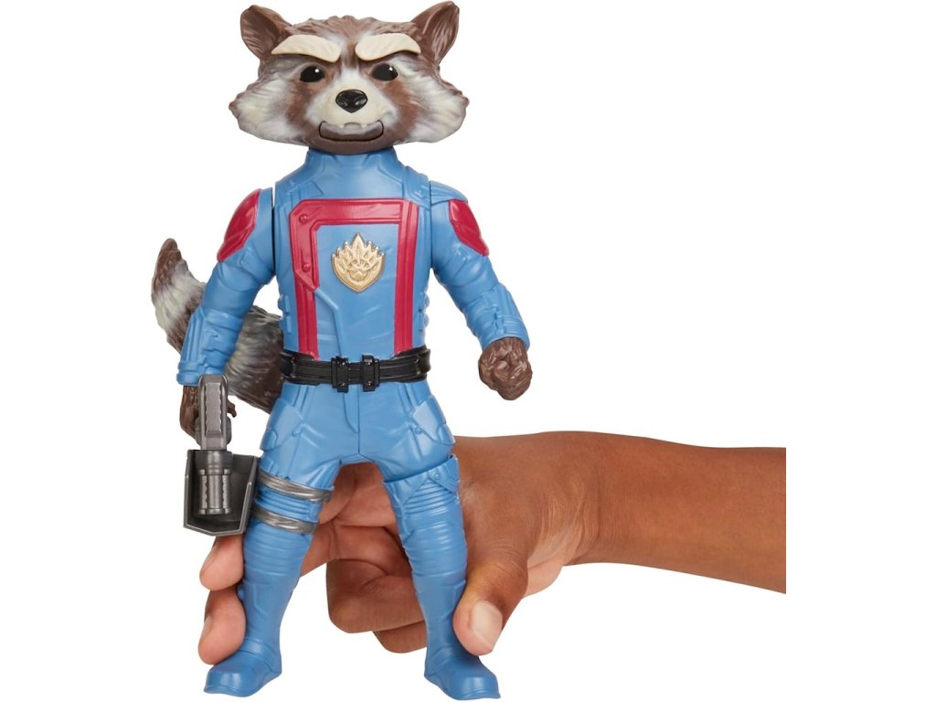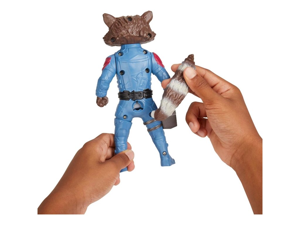 • Tato figurka Marvel's Rocket obsahuje aktualizované obleky a doplňky zbraní inspirované Guardians of the Galaxy Vol. Film 3.