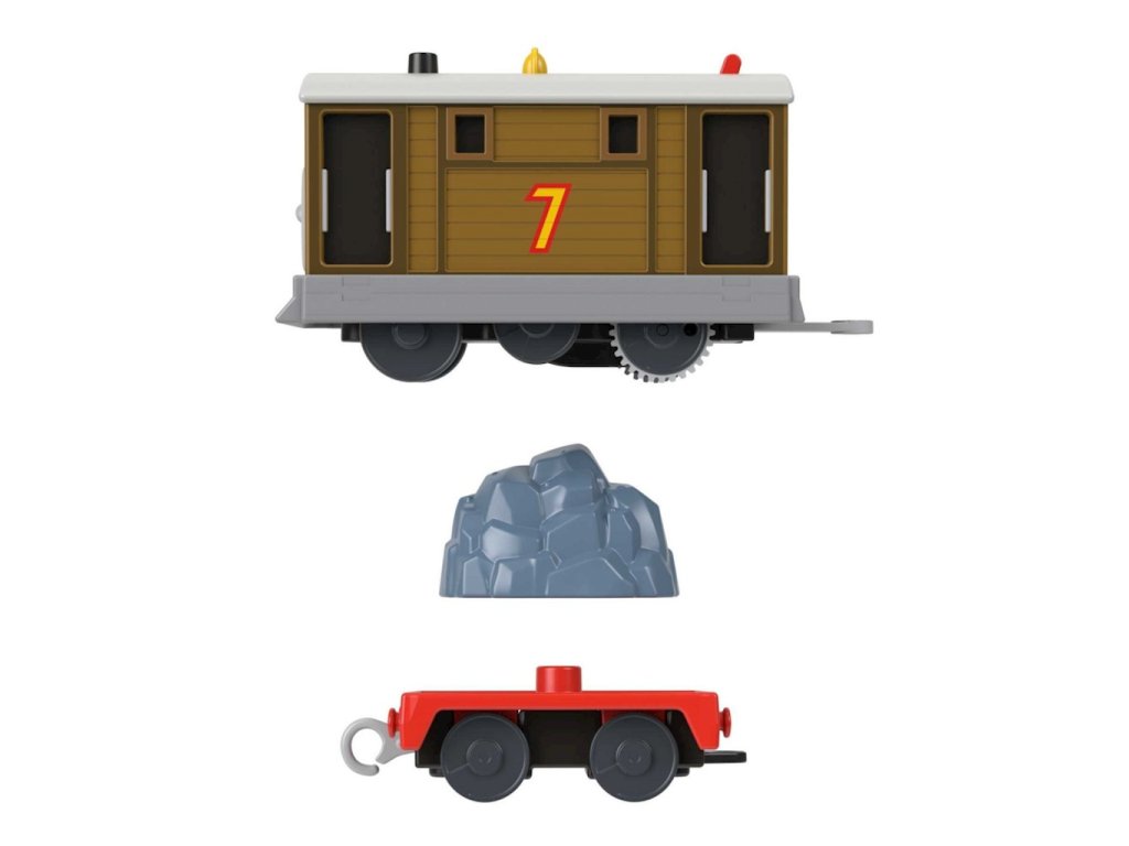 Motorizovaný vlak Toby HTN30 Thomas & FriendsMalí železničáři se mohou vydat na dobrodružství se svou oblíbenou postavičkou Thomas & Friends s touto motorizovanou lokomotivou od Fisher-Price! Přepněte spínač na horní straně lokomotivy a pošlete Percyho a jeho vagón na veselou jízdu po jakékoli trati Thomas & Friends, kromě těch v dřevěné sérii. Sbírejte zbývající lokomotivy poháněné Thomas & Friends, vytvořte si vlastní železnici a zažijte jedinečná dobrodružství na ostrově Sodor. (Soupravy kolejí a doplňkové lokomotivy se prodávají samostatně).