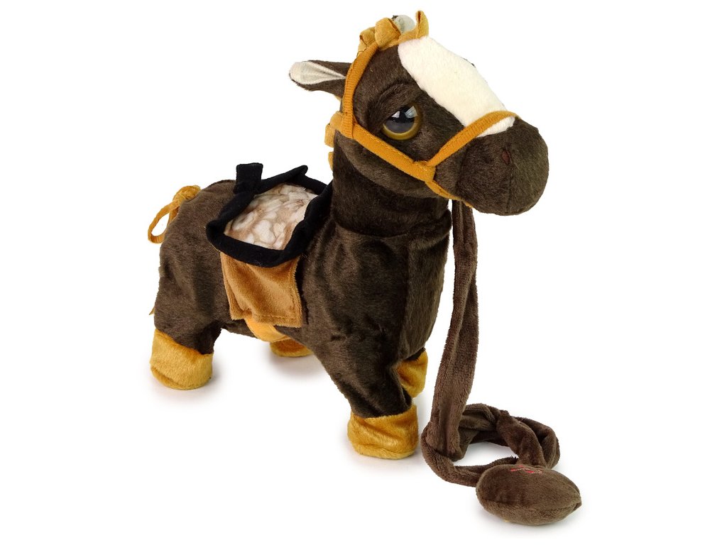 Kůň je vyroben s maximální pečlivostí, hnědé barvy, měkký na dotek se světlou hřívou. Interaktivní kůň je měkký čtyřnohý přítel. Kůň řve a hraje melodii. Po vložení baterií stačí stisknout rukojeť z vodítka a chodí vedena na vodítku, pohybuje ocasem a hlavou za doprovodu přátelské country hudby.