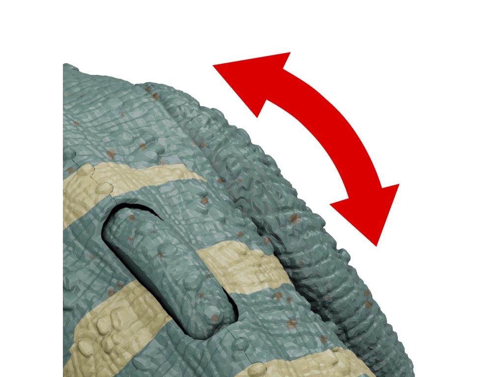 • Hnací kolo této figurky dinosaura lze otáčet dopředu nebo dozadu pro nepřetržitý, realistický pohyb hlavy a silný útok čelistí!