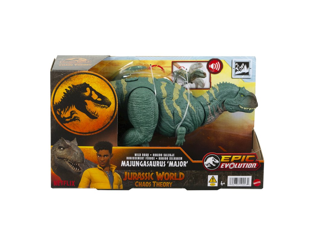• Bláznivý útok a řev! Dinosauří hračka Majungasaurus Divoký řev, inspirovaná filmem „Jurassic World: Chaos Theory“, představuje agresivní útok čelistí doprovázený zuřivým řevem!