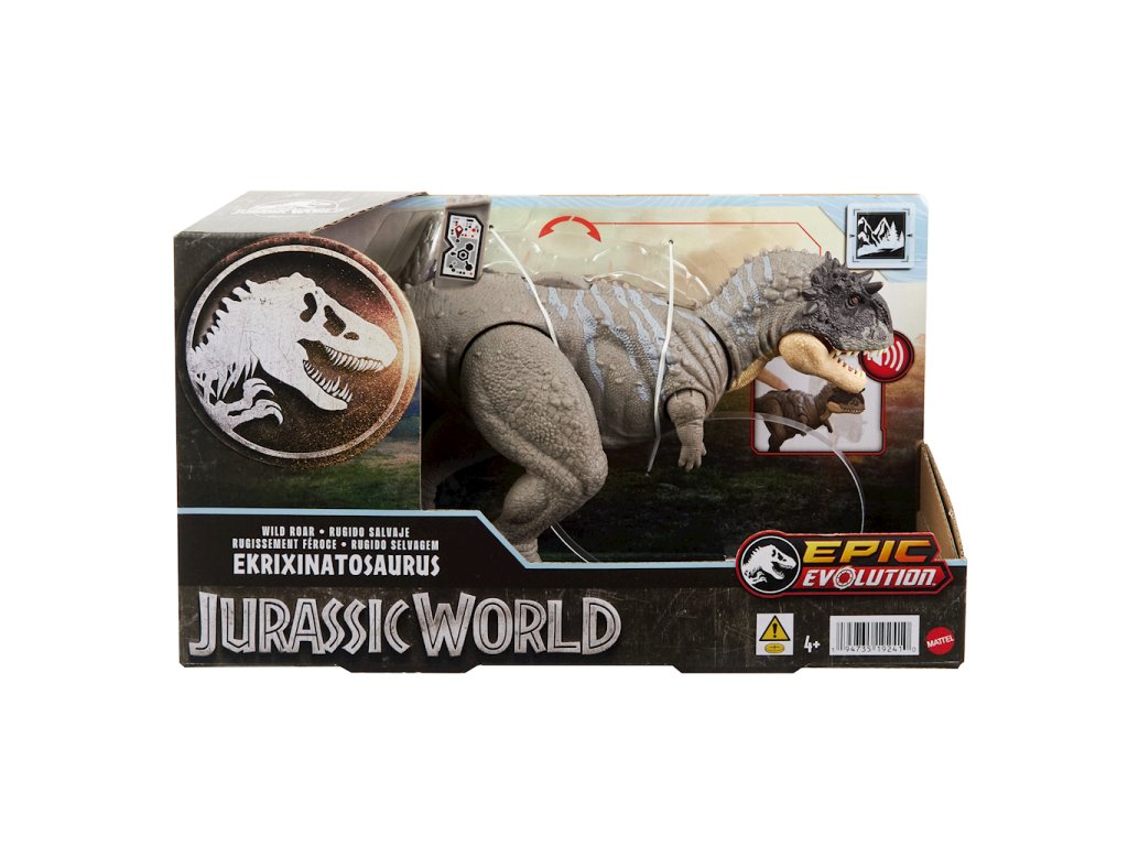 Mattel Jurassic World Epic Evolution Ekrixinatosaurus Dinosaur Postava HTK70Pravěká zábava! Tito dinosauři hrůzostrašný řev s velkolepým ÚTOKEM a mocným řevem, které k tomu přispívají vzrušení ze hry. Každá figurka má druhově vhodný útok, od nárazy ocasem a hlavou k útokům kýváním do strany. Otočný prvek lze posouvat dopředu a dozadu pro hladký a realistický pohyb. Jednoduše naskenujte sledovací kód zdarma Aplikace Jurassic World Play s kompatibilní smartphone/tablet (není součástí dodávky) k objevování funkcí a hry s rozšířenou realitou.