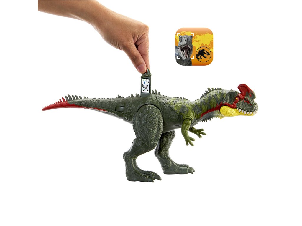• Naskenujte skrytý sledovací kód dinosaura v bezplatné aplikaci Jurassic World Facts pomocí kompatibilního chytrého zařízení (není součástí dodávky) a spusťte aktivity a hry s rozšířenou realitou.