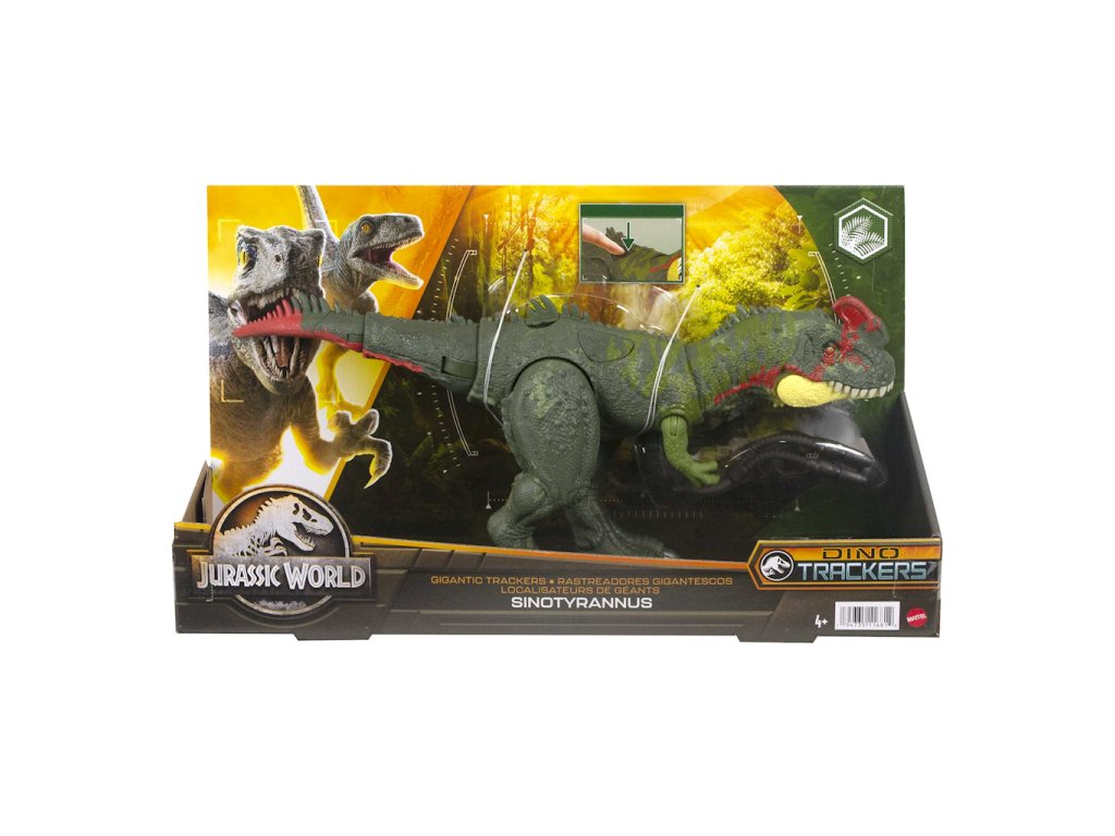 Mattel Jurassic World Giant Tracker Sinotyrannus Dinosaur Figure HLP25Tento obří stopař Sinotyrannus obsahuje 2 útočné pohyby a odnímatelné sledovací zařízení inspirované filmem Jurassic World Dominion! Tato autentická figurka má rozšířený rozsah pohybu a je skvělým dárkem pro fanoušky dinosaurů ve věku od 4 let. Oživte tohoto dinosaura pomocí rozšířené reality! Naskenujte skrytý sledovací kód v bezplatné aplikaci Jurassic World Facts pomocí kompatibilního zařízení (Android nebo iOS, není součástí dodávky) a odemkněte AR zážitky a hry!