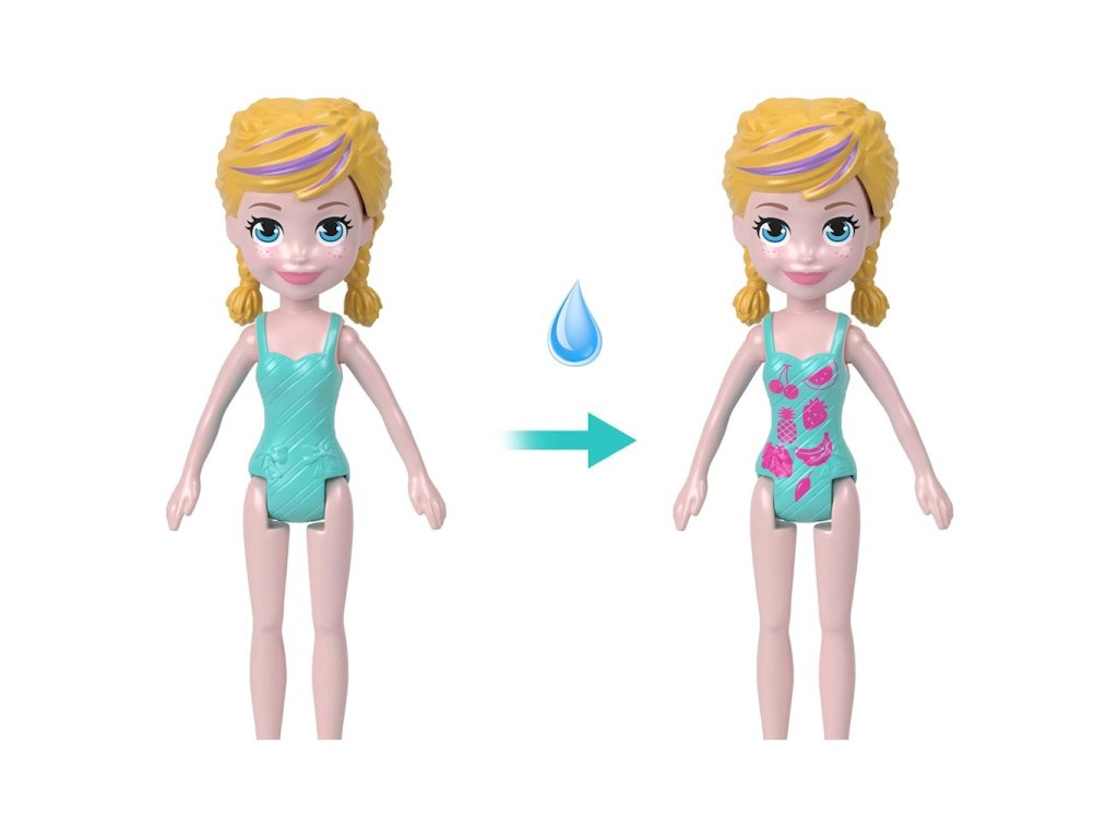 změňte barvu ve vaně• Připevněte melounovou houpačku k sadě pro panenku Polly, aby se mohla houpat dopředu a dozadu,