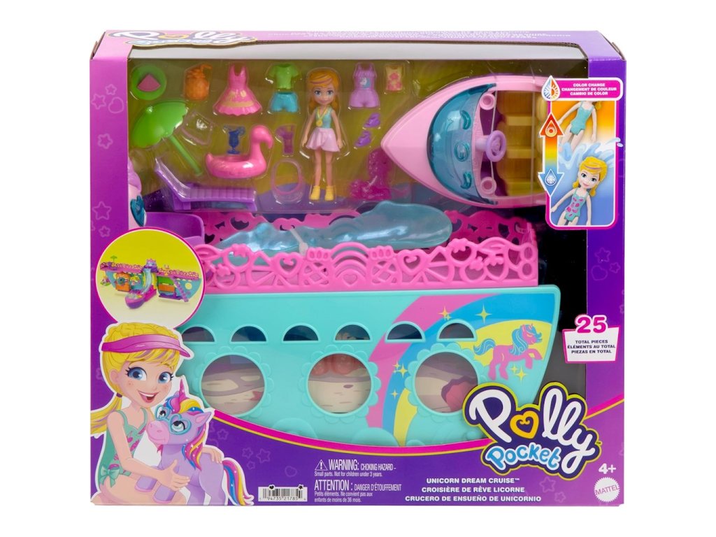 Mattel Polly Pocket Unicorn Dream Cruise Přenosná Loď HWP26