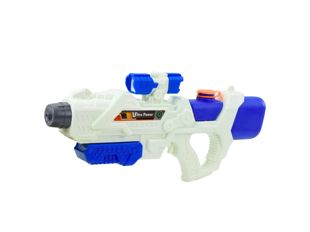 Mechanicky pumpovaná vodní pistole, puška, bílá a modrá 600 ml