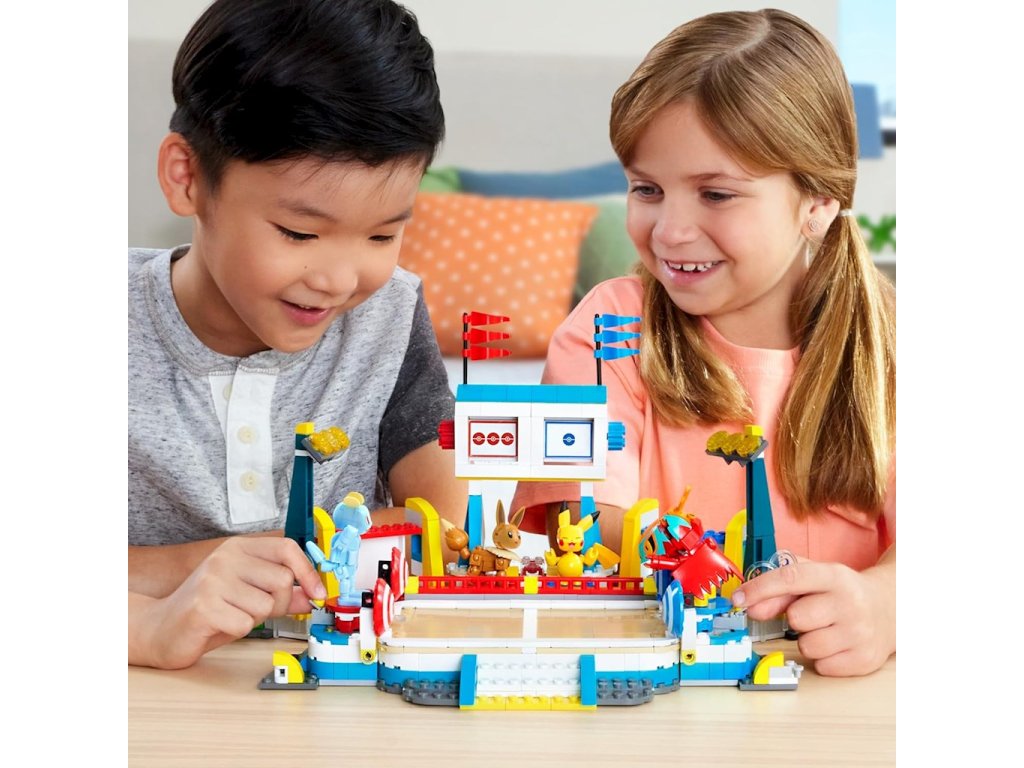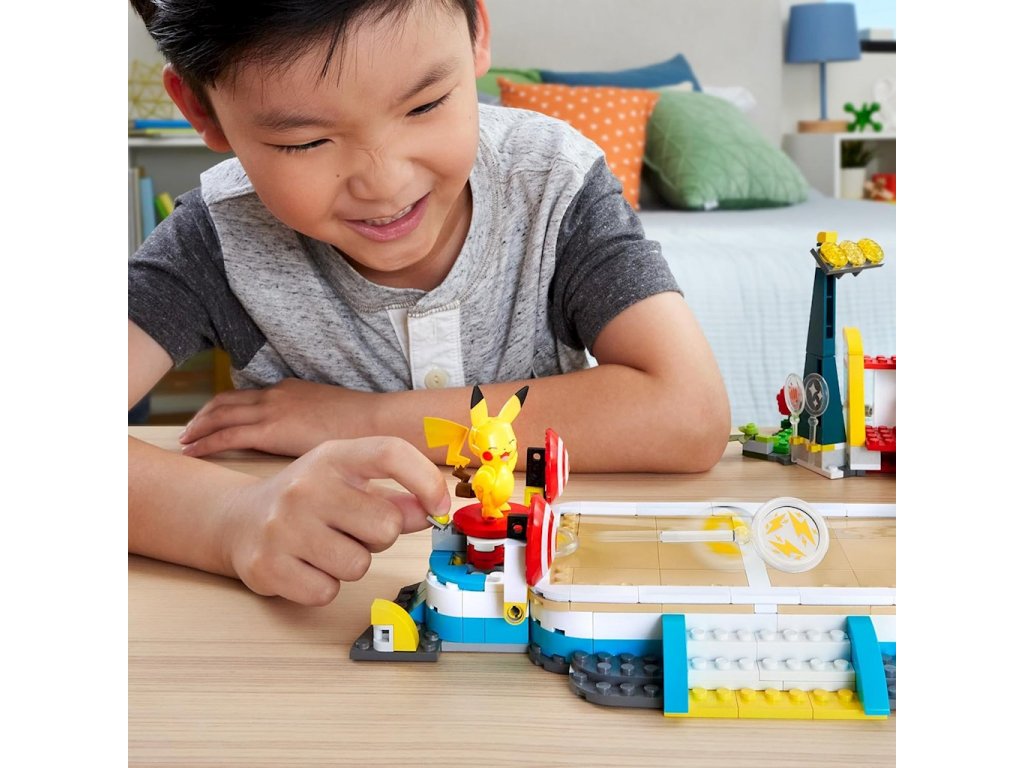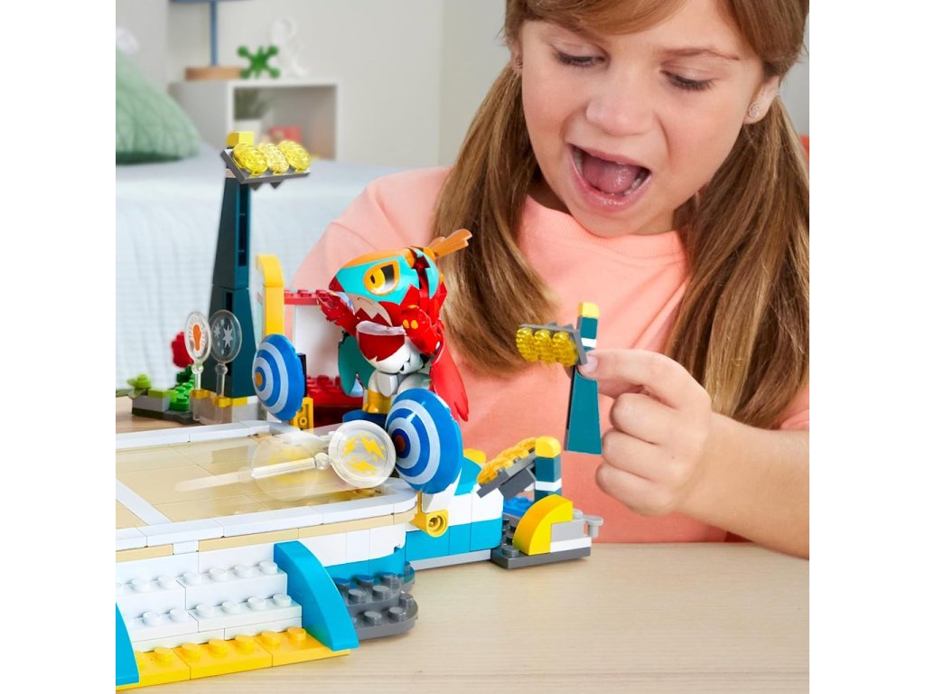 Mega Pokémon Training Stadium 1107 Pieces HWR82Vytvářejte bitvy Pokémonů s Training Stadium! Trenéři mohou postavit stadion a poté pomocí vestavěných odpalovacích zařízení bojovat se svými Pokémony v aréně. Pak mohou otočit klikou a vidět publikum jásat!