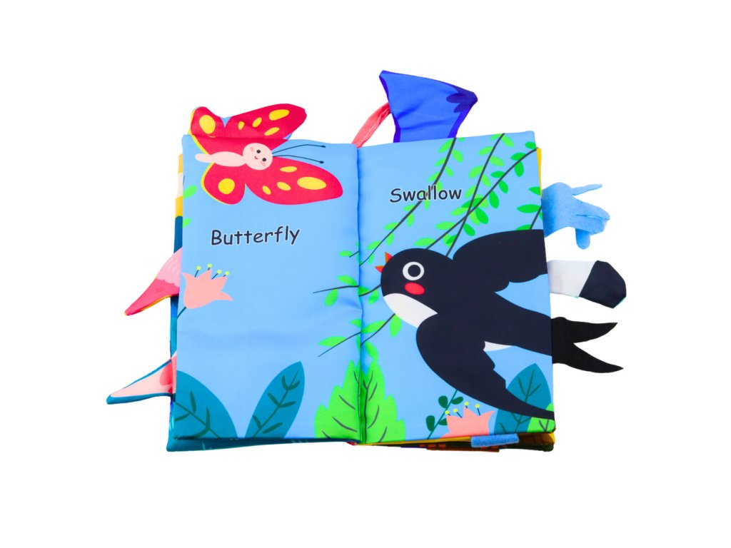 Měkká smyslová knížka s obrázky ptáčků je ideální vzdělávací hračka vytvořená s ohledem na nejmenší děti. Jeho konstrukce je založena na bezpečných, měkkých materiálech s různými texturami, které povzbuzují batole objevovat svět prostřednictvím dotyku. Díky různým texturám může dítě procvičovat prsty, učit se novým smyslovým zážitkům a rozvíjet manuální dovednosti.