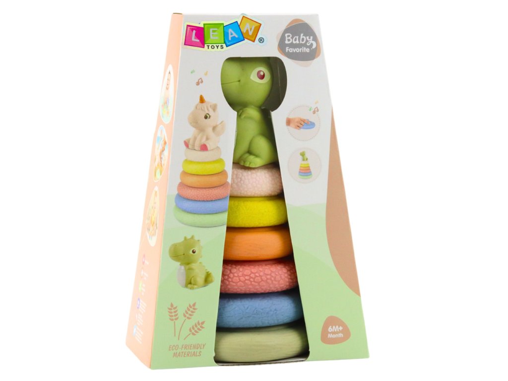 Měkká senzorická pyramida – dinosaurus, gumová, ECO, barevná