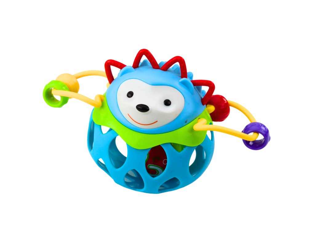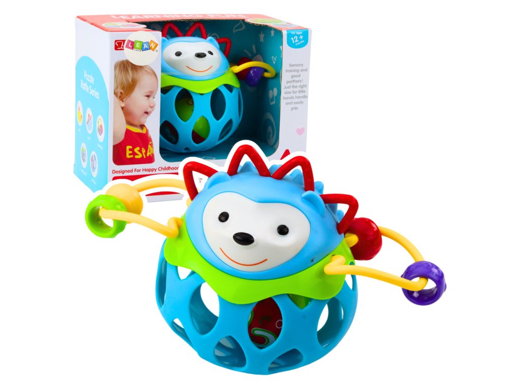 - Chrastítko s kuličkou - modrý ježek