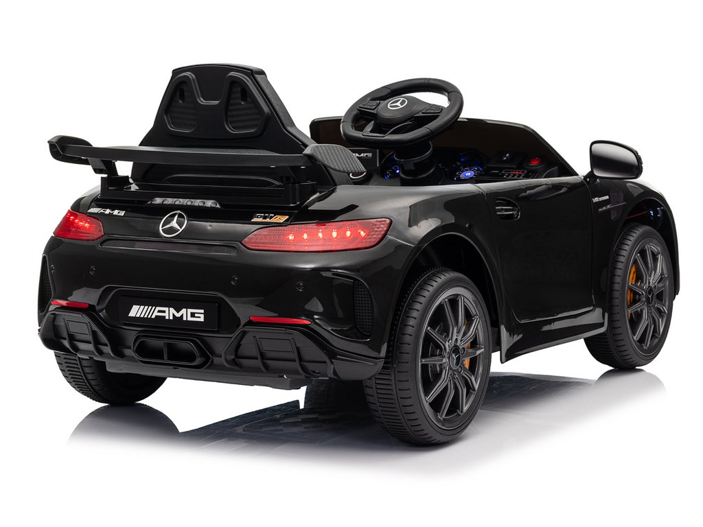 Prvkem, který by v bateriovém autě pro batole nemohl chybět, je hudební přehrávač. FM rádio je připojeno k portu USB a také slotu pro paměťové karty SD, což vám umožní cestovat s oblíbenými skladbami na pozadí. Omezením proti hraní si s černým Mercedesem GTR je hmotnost - přípustné zatížení bateriového vozidla je 30 kg.