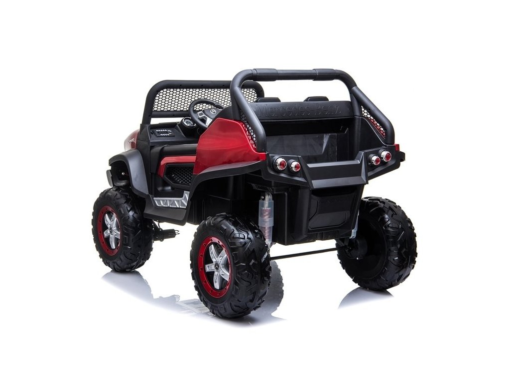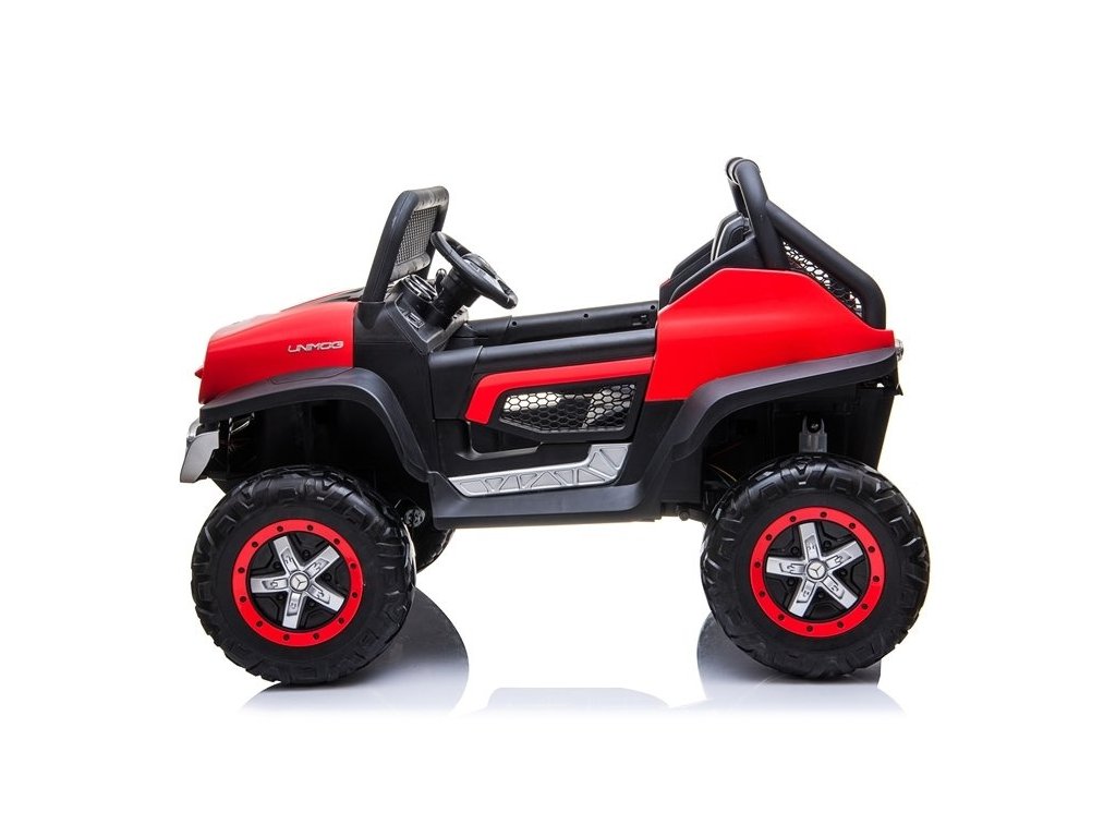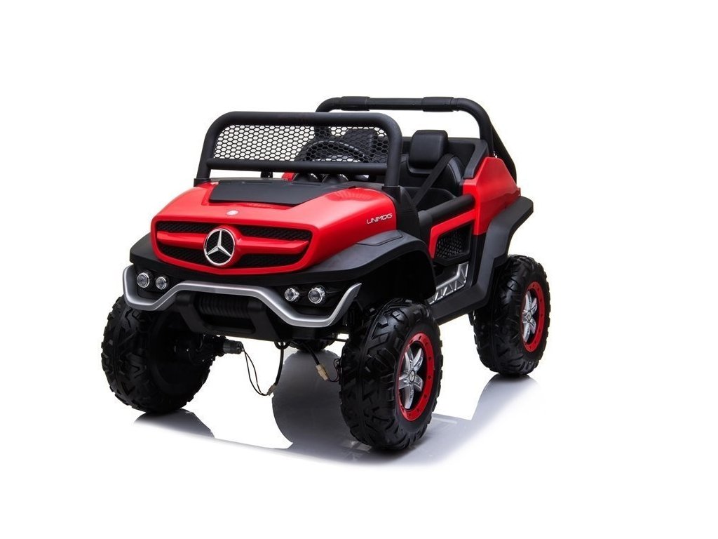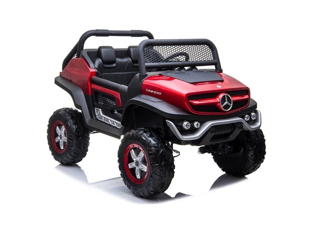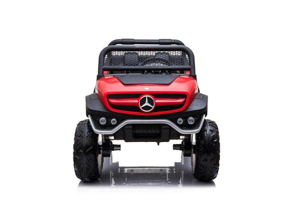 Červený vůz Mercedes Unimog byl navržen s důrazem na ten nejmenší detail, který ovlivňuje pozitivní pocity mladého jezdce rally. Odolná a masivní konstrukce v kombinaci s kvalitními materiály zajistí skvělou zábavu po mnoho let a odolnost proti poškození. Atraktivitu modelu zvyšují otevírací dveře a tlumiče, na kterých je namontován, díky čemuž je jízda po nerovném a hrbolatém terénu mnohem příjemnější a dobrodružnější. Toto dětské auto na baterie jistě splní očekávání mladých motoristických fanoušků. Proč? Za pozornost stojí jeho reálné provedení, motor 4x45W, baterie 12V14Ah a podsvícená palubní deska.