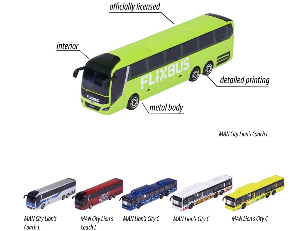 MAN vytvořila respektovaná společnost Majorette , která již léta navrhuje hračky pro děti s důrazem na detail. Pochází z řady Majorette Trailer , která zahrnuje vozidla sloužící k přepravě osob nebo předmětů, jako je autobus, různé typy nákladních automobilů a vozidla s přívěsy.