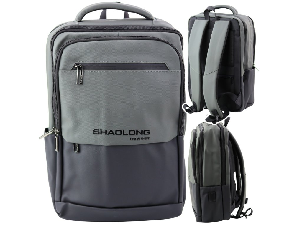 Městský business batoh USB kapsa na notebook černý šedý 16 l 41 cm