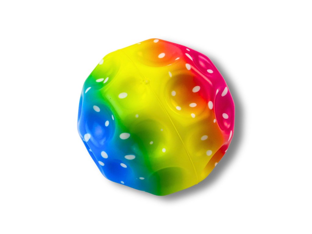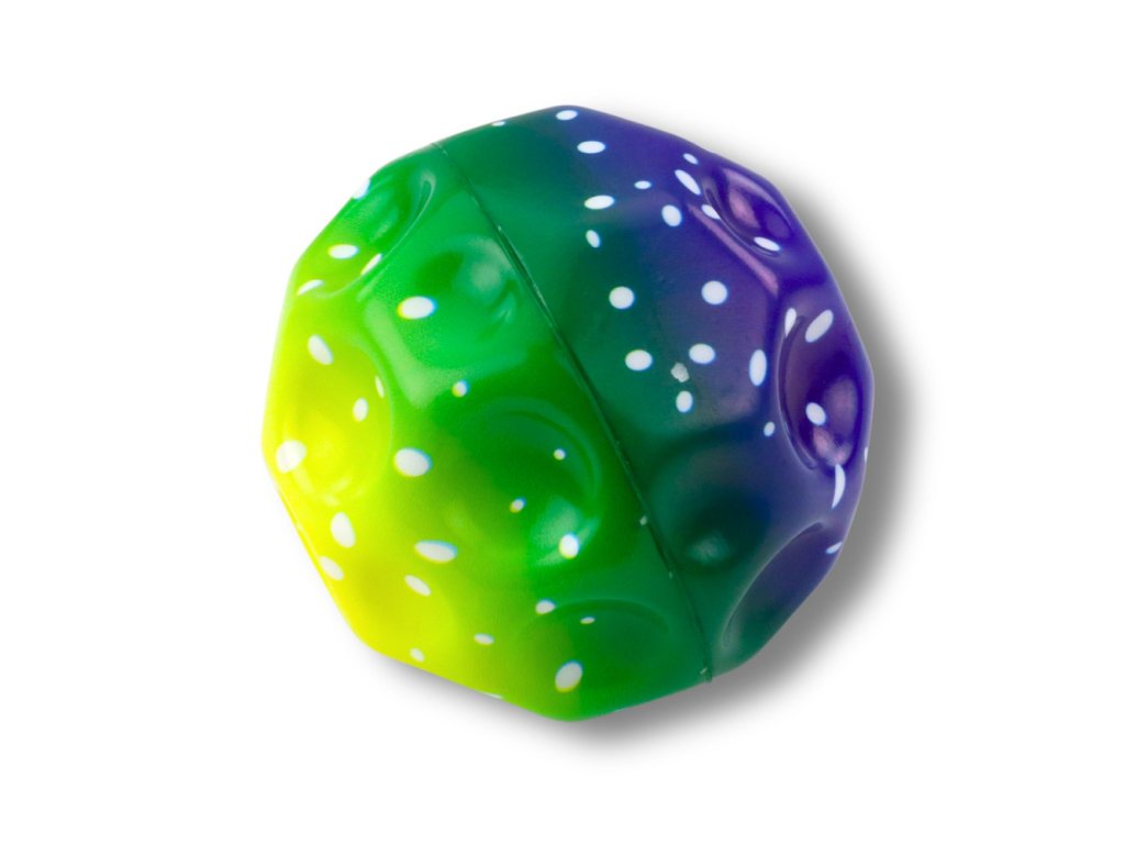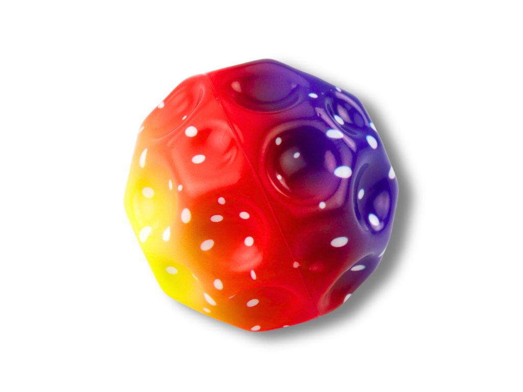 Tento dolíčkový míč je jedinečná sportovní hračka, která povzbuzuje děti k fyzické aktivitě a poskytuje spoustu zábavy při hraní. Jeho průměr 10 cm perfektně padne do ruky, takže se snadno chytá, hází a odráží. Povrch s četnými důlky vytváří nepředvídatelné odskoky a zvyšuje dynamiku a vzrušení ze hry.